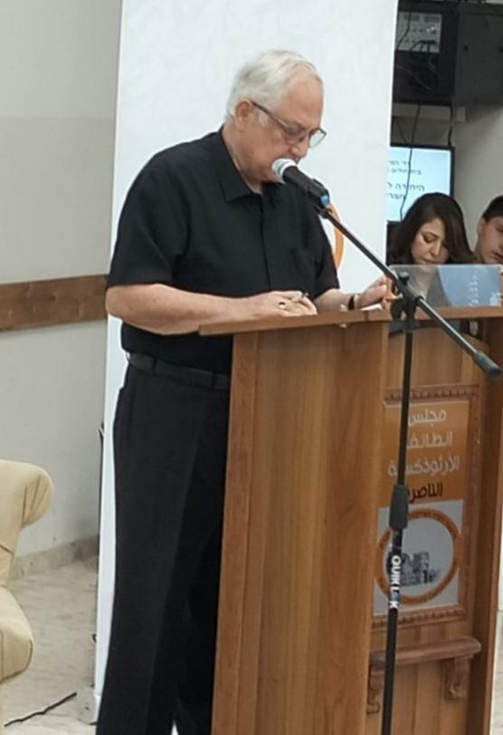 ثم دعت العريفة د. جبيلي البروفيسور بروفيسور Nahum Halpern ناحوم هلبرن الذي استقبله الجمهور بحفاوة ومحبة وحماس.