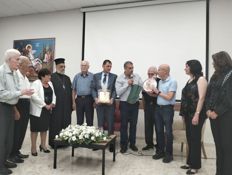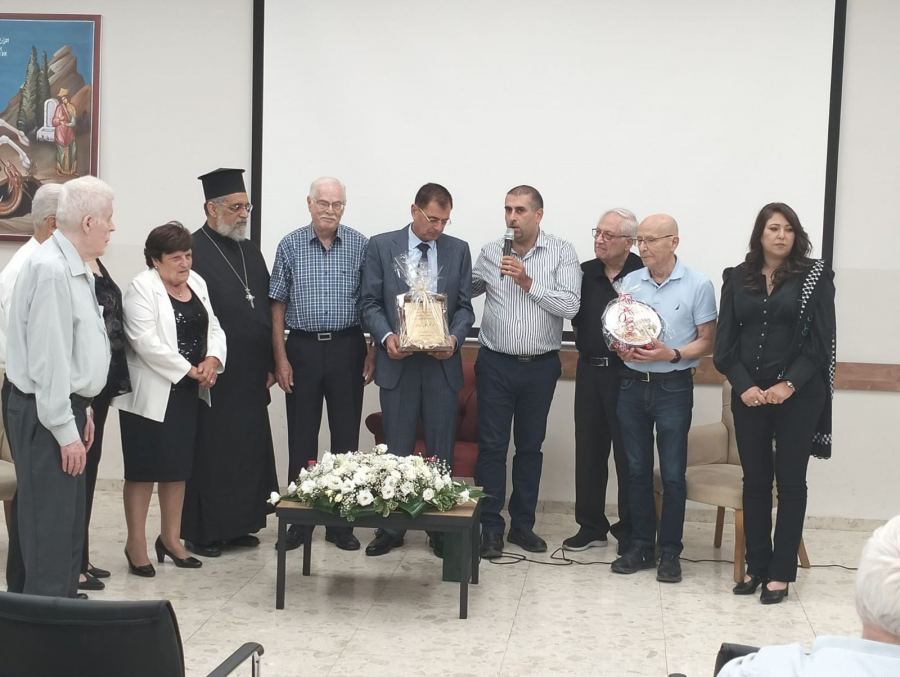 دعي رئيس مجلس الطائفة الأرثوذكسية السيد المحامي بسيم عصفور، أعضاء الهيئة التمثيلية للطائفة مع أعضاء منتدى الناصرة الثقافي السيد كريم شداد، الشاعر مفلح طبعوني، د. نصر خوري، د. حنان جبيلي عابد والطبيب كردوش إلى المنصة لاستلام درع التكريم، عرفانًا وتقديرًا لكل ما قدمه من عطاءٍ وإنجازات مشرفة في مجال الطب.