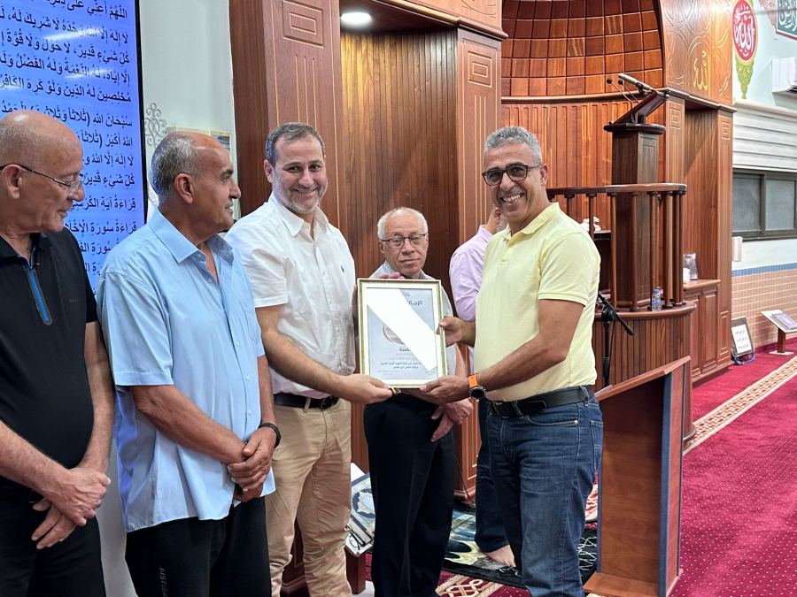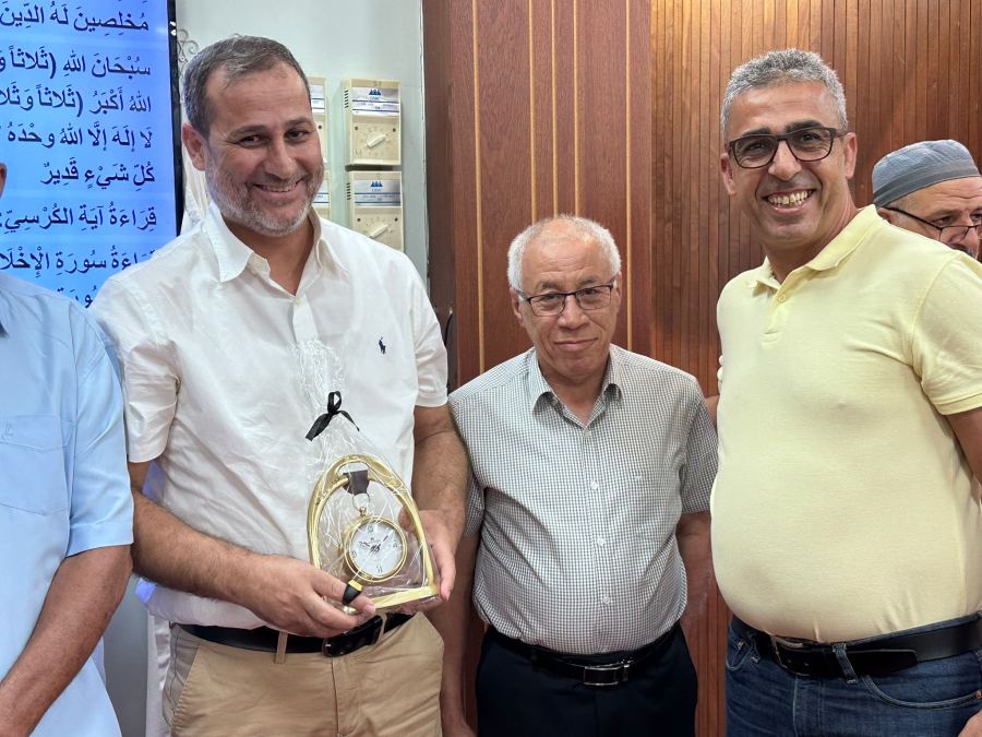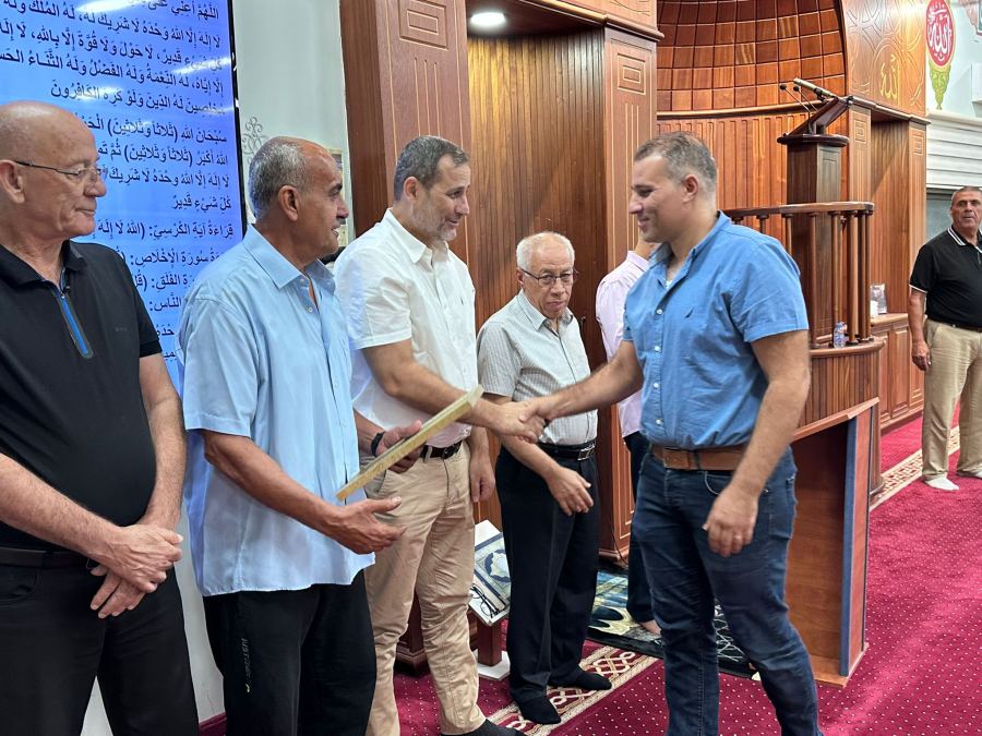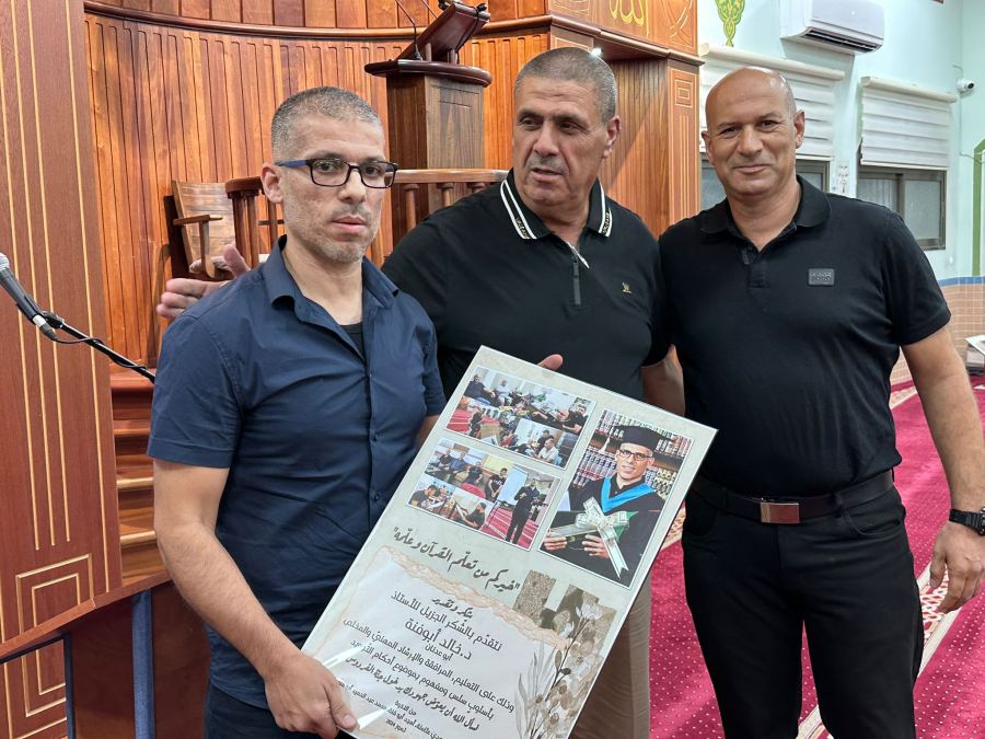 كنوز نت : تم مساء اليوم الأربعاء 25/9 بعد صلاة العشاء في مسجد الصندحاوي تكريم الأخوة الذين تقدموا لامتحان الإجازة الاخير 1446 هجري بإشراف وزارة الأوقاف الفلسطينية بمشاركة معلميهم الاستاذ خالد عدنان أبوفنة والأستاذ جميل فايز عثامنة والأستاذ طارق محمود كبها،