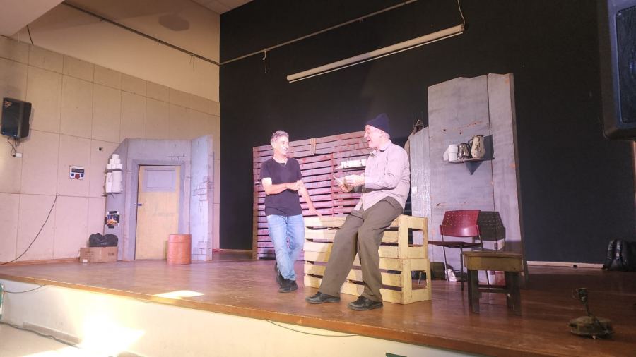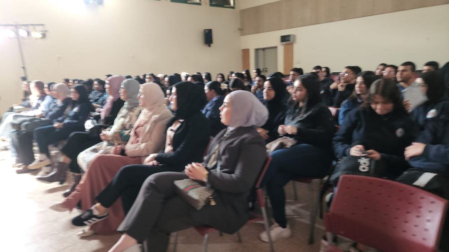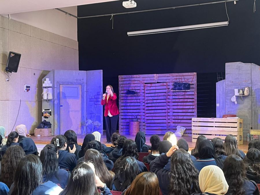 ولمدة ساعة ونصف تقريباً عاش الطلاب عرضا مسرحيا راقيا ناقداً مزج بين الدمعة والضحكة، وابدع بتجسيد معاناة العمال العرب الفلسطينيين في تل ابيب.