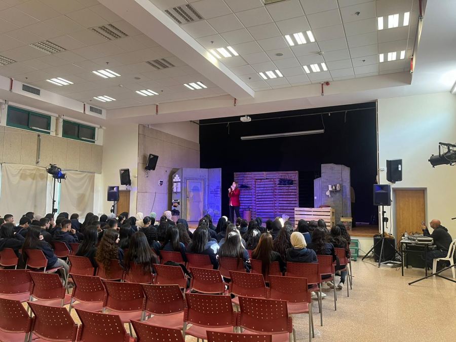 كنوز نت - تم في الأيام الاخيرة تمرير العرض المسرحي الشيق والناقد "2 في تل أبيب" ضمن برنامج تشرين الثقافة الذي يقوم عليه مكتب الرئيس وقسم الثقافة والتربية اللا منهجية في بلدية كفر قرع لطلاب المدرسة الثانوية الشاملة على اسم احمد يحيى، والذي يشمل باقة مميزة من الأعمال التربوية الثقافية للطلاب، وذلك بتمويل كامل من وزارة الثقافة وبمبادرة وإشراف مكتب الرئيس وقسم الثقافة والتربية اللا منهجية في البلدية.