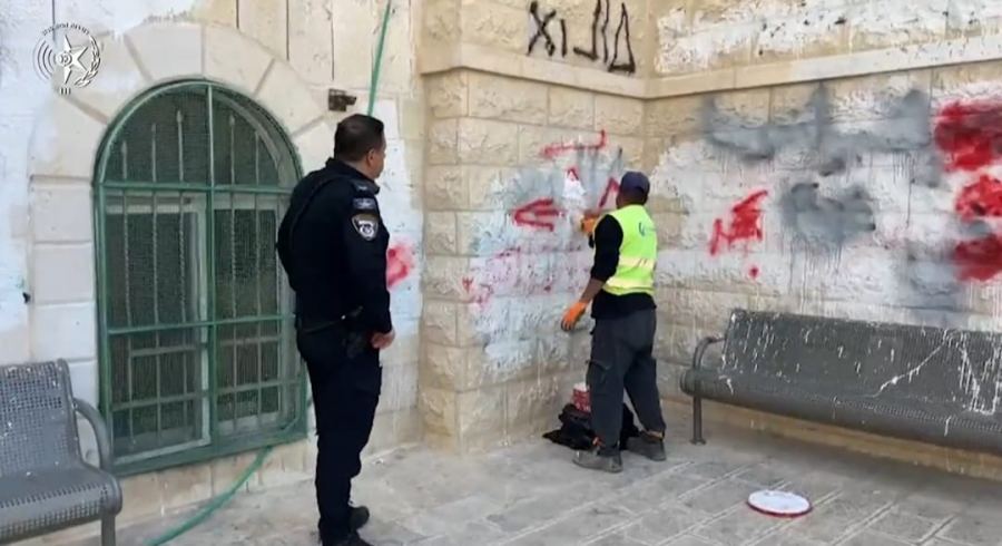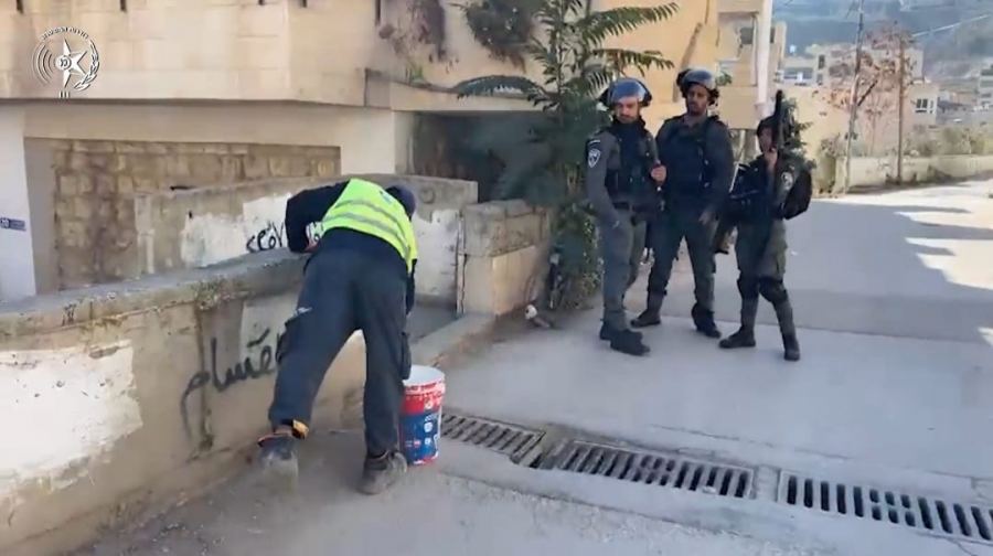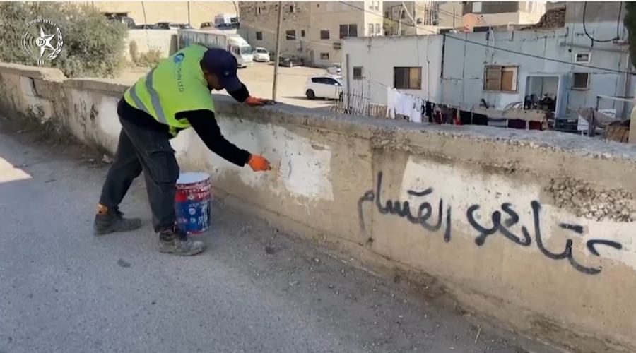 مرفق- فيديو وصور من نشاط افراد شرطة لواء أورشليم القدس، وإزالة الكتابات على الجدران.