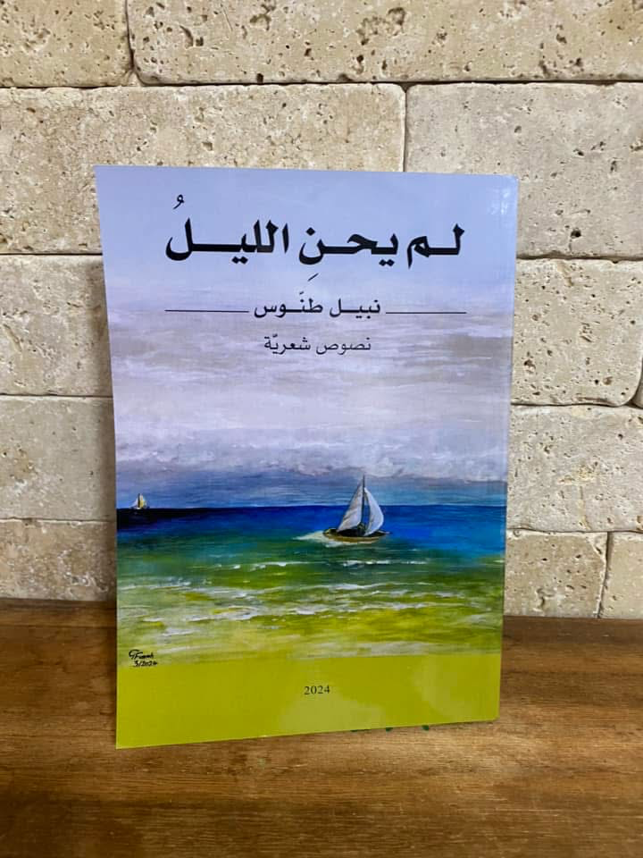 كنوز نت - صدر حديثا عن دار سهيل عيساوي للطباعة والنشر ، وبدعم من وزارة الثقافة والرياضة ، وصندوق يهوشوع رابينوفيتش ، ديوان " لم يحن الليل " للأديب والشاعر الدكتور نبيل طنوس ، يقع الكتاب في 96 صفحة من الحجم المتوسط ، ورق مصقول ، لوحة الغلاف للفنان والشاعر جورج جريس فرح ، من عناوين القصائد ؛ حالة غموض ، ليتها تعود ، وعد الكاهن ، ضوء القمر ، ضباب ، منخفض عاطفي ، لم يحن الليل ، بين سبحة وسبحة ، متى أكتب ، المنتصف ، غياب ، شعر وشال ، دوامة ، غيابك حقيقة ، صوت يناديني ، ابتعدت لأراك ، الموت في كل مكان ، وردتي البيضاء ، موسيقا تملأ المكان ، حي هو ، كبرت يا نبيل ، حفيدتي جود ، زيتونة أبي.