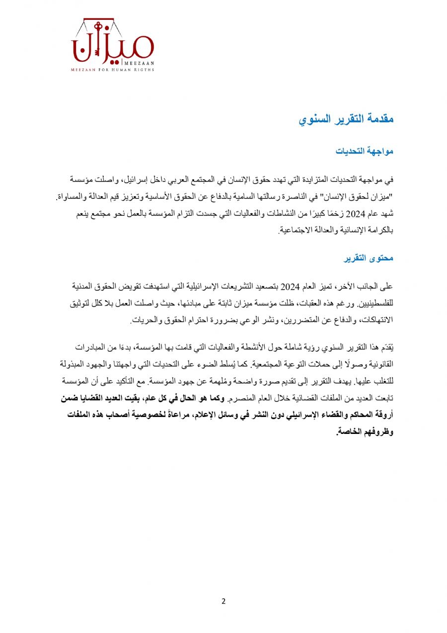 مؤسسة ميزان تصدر تقريرها السنوي لعام 2024: التزام مستمر وسط تحديات متصاعدة
