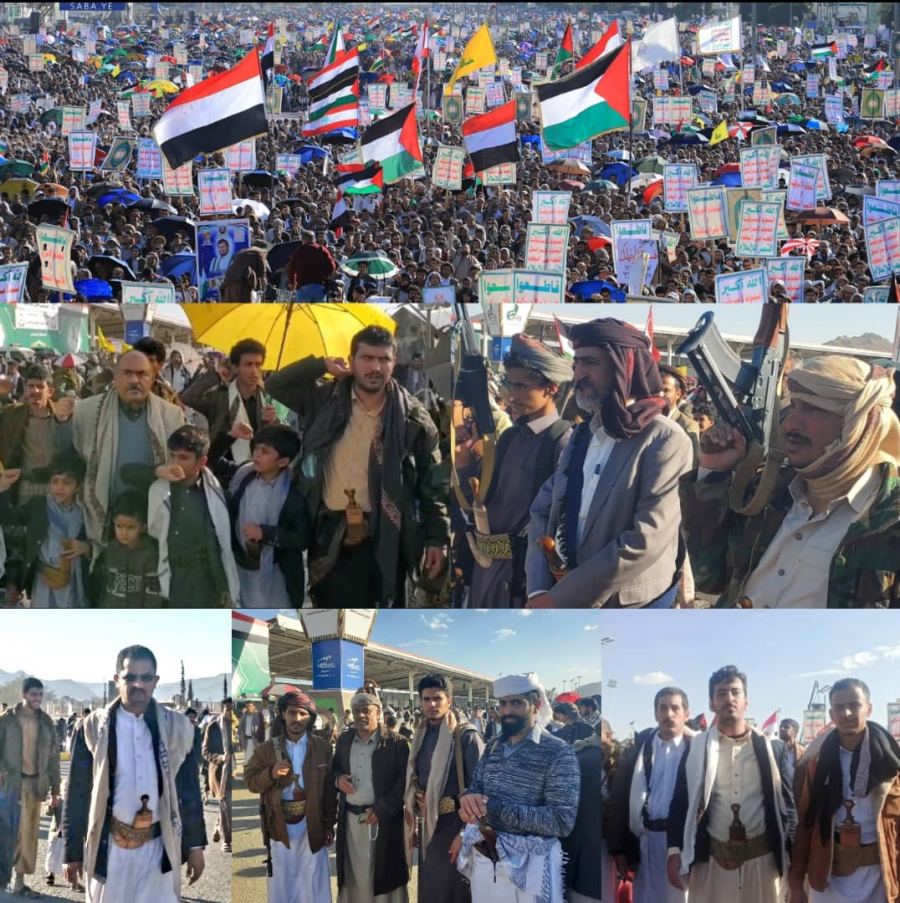 حشود مليونية بالعاصمة صنعاء في مسيرة "جهاداً في سبيل الله ونصرة لغزة.. سنواجه كل الطواغيت
