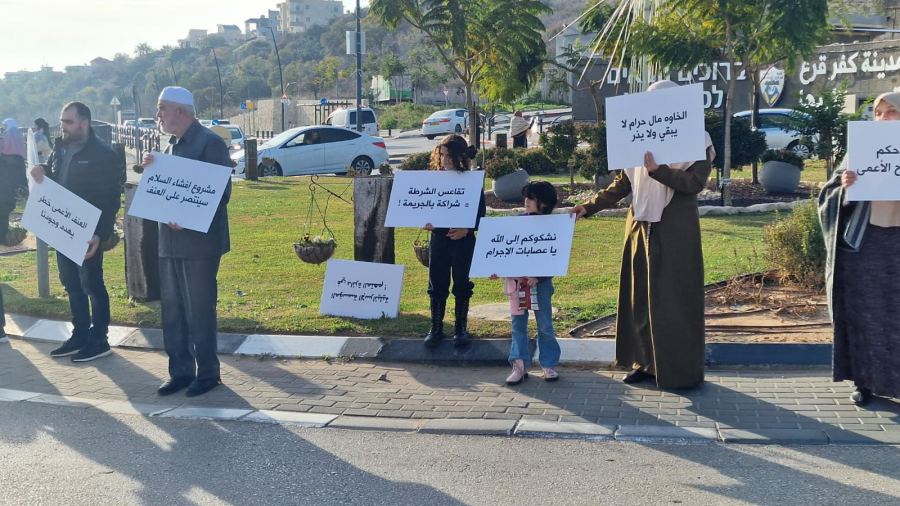 كنوز نت - نظّمت لجنة إفشاء السلام النسائية في أم الفحم وضواحيها اليوم وقفة احتجاجية في قرية كفر قرع، تنديدًا بظواهر العنف والقتل المتفشية في المدن والقرى في الداخل الفلسطيني أراضي الـ48.