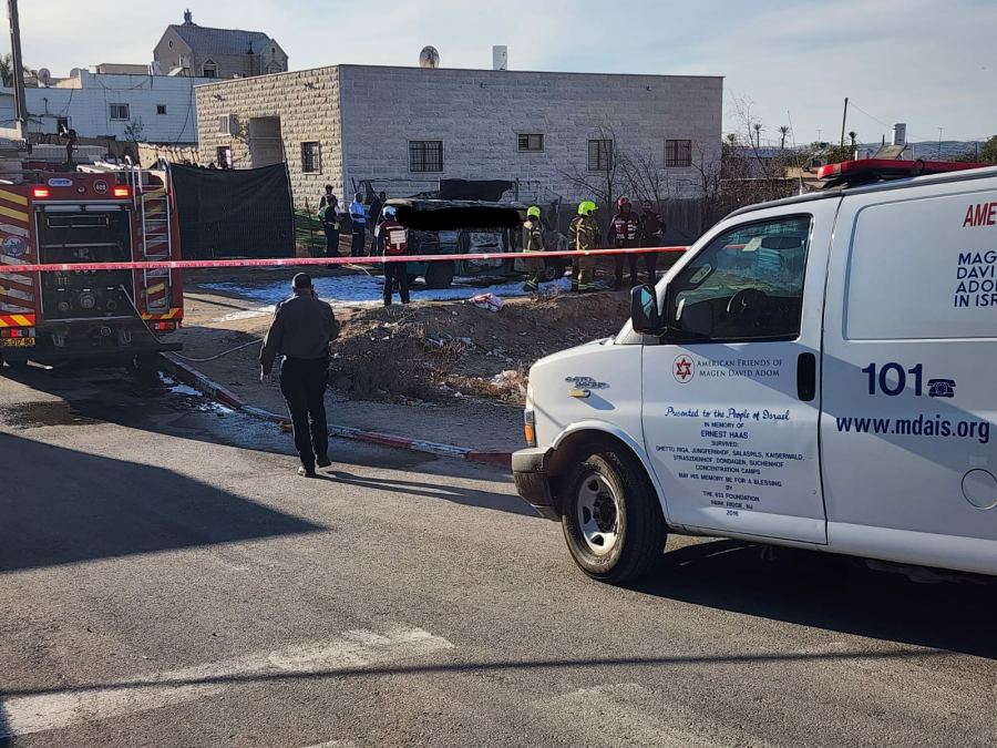 الطواقم الطبية التابعة لنجمة داوود الحمراء هرعت للمكان وأعلنت وفاتها على الفور متأثره بالحروق البالغة.