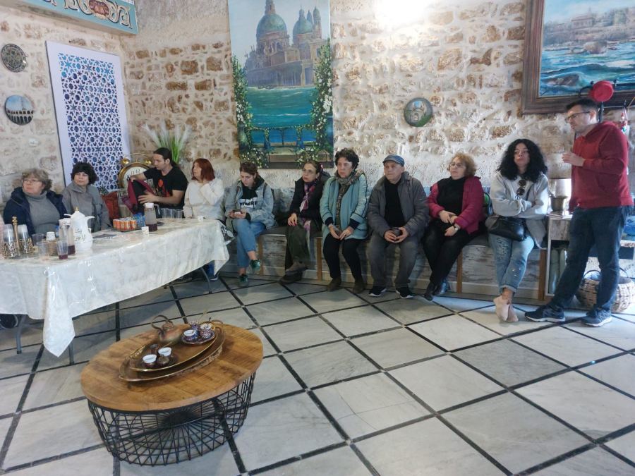ثم انضم للمجموعة اشرف عامر عضو بلدية عكا ممثل قائمة الجبهة في عكا حيث أعطى فكرة عن وضعية الأعضاء العرب في البلدية وعن السياسات من بعد أحداث الغفران 2008 ومن ثم الحرب الاخيرة وتأثيرها على العلاقات بين اليهود والعرب. وبعد ذلك استمرت الجولة إلى بيت الياسمين حيث استقبلت الوفد هناك السيدة مريم عيف لتعرفنا على فندق قامت بترميمه على مدار 20 عاما وهو عبارة عن بيت عمره 400 عام. وتحدثت عن الصعوبات في ترميمه ومحاولات التضييق ودفعها لبيعه، ثم استمرت الجولة نحو الازقة والحارات في البلدة القديمة بحيث مر الصحافيون في زقاق جدرانه تتميز باجسام ملونة وفنون صنعت بيد الفنان التشكيلي وليد قشاش تعبر عن تهميش البلدة القديمة من قبل السلطات وإهمال هذه المناطق من البلدة التاريخية التي تعاني من الفقر والتهميش، تجول الصحافيون بعد ذلك في السوق العمومي وتعرفوا على الصيادين وطريقة عملهم واخذوا لمحة عن المعيقات التي تعرقل عملهم وتغلق باب رزقهم، ثم زارت المجموعة السيدة فلسطين خطيب التي استقبلتهم بحانوتها المميز الذي تعد به حلوى تراثي "مهلبية" والقت الضوء على الوضع الاقتصادي السيء وبالذات خلال فترة الحرب . اكمل الصحافيون مسارهم في السوق الذي يتميز بنوعية البضائع والحلويات الشرقية والبهارات والبخور وبيع الملابس التراثية، واختتمت الجولة في لؤلؤة عكا "الميناء"، مع تقديم شرح عن أهمية الميناء التاريخية بحيث كان مرفأ للسفن التجارية واليوم يستخدم كمرفأ للسفن الصيد والسياحة الداخلية.