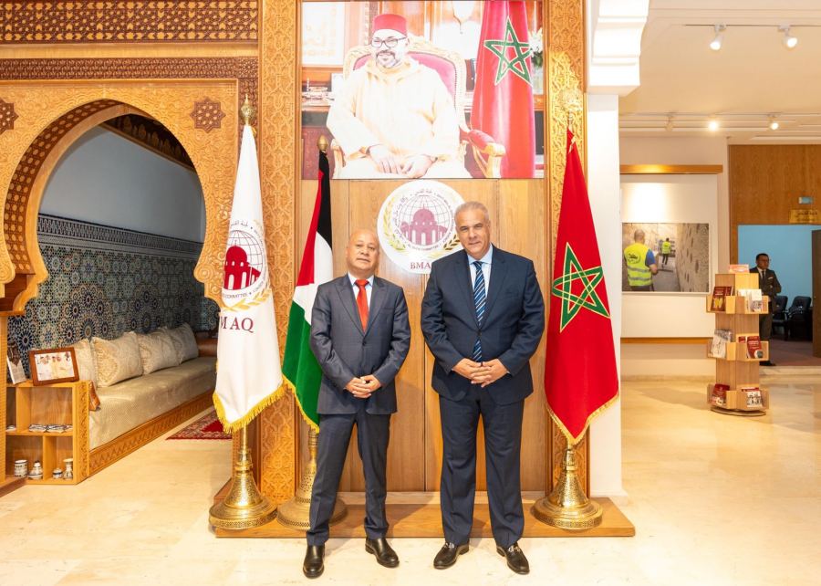 وثمن المسؤول الفلسطيني خلال زيارته لمقر وكالة بيت مال القدس الشريف في الرباط، بمعية سفير دولة فلسطين لدى المملكة المغربية، جمال الشوبكي، وانور حمام وكيل الدائرة، الحضور النوعي للوكالة ولنشاطها في القدس.