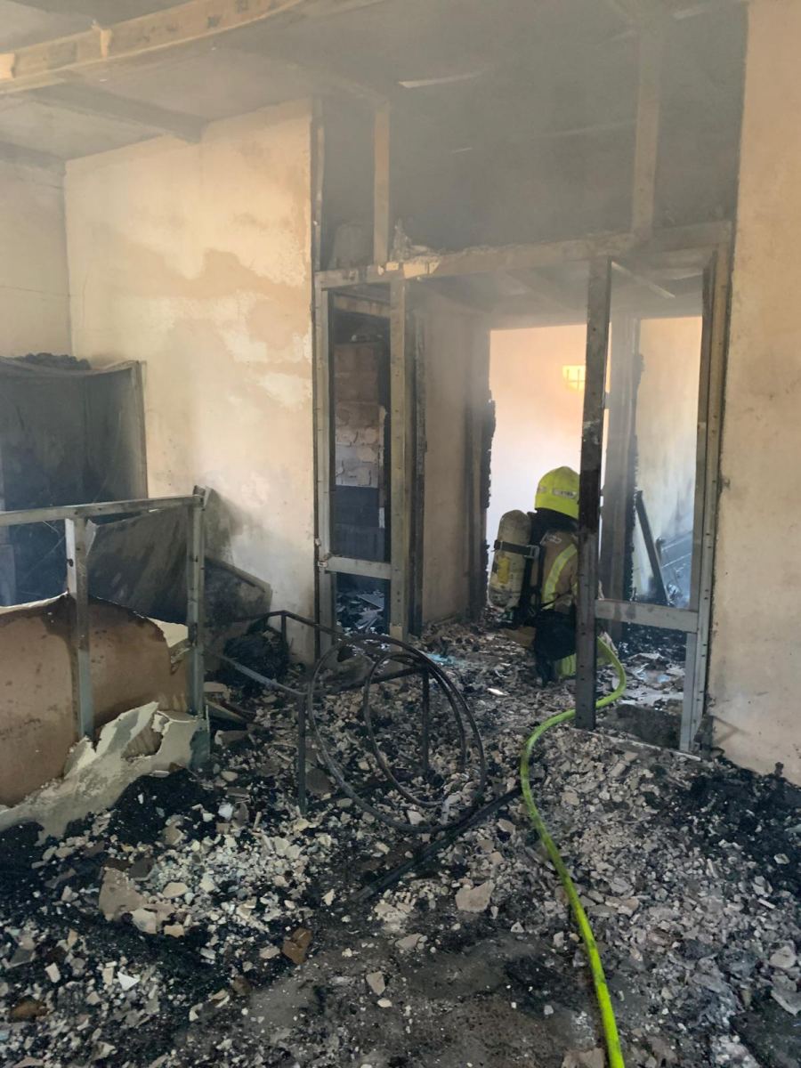 لدى تلقي البلاغ وصلت الطواقم إلى مكان الحريق وعملت على اخماد النيران ومنع انتشارة إلى منازل أخرى بعد التأكد من عدم وجود عالقين .