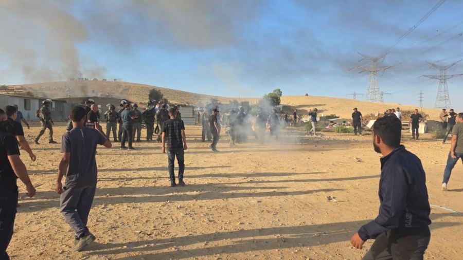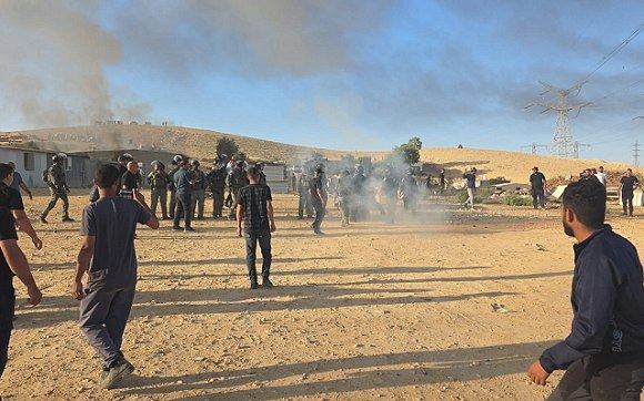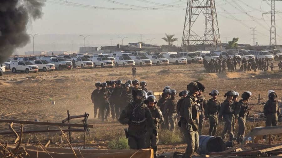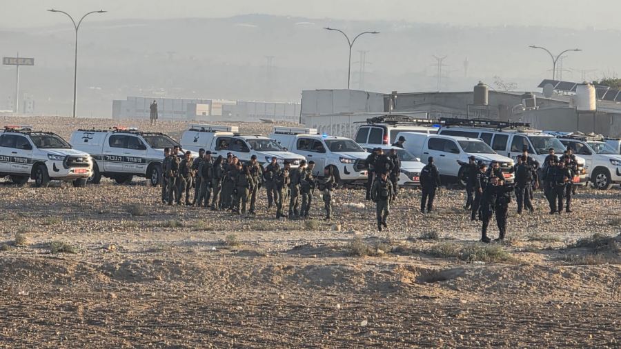 قوّات كبيرة من شرطة #إسرائيل في لواء #الجنوب، بمشاركة وحدات خاصّة، أقدمت على تأمين تنفيذ أمرقضائي قرب شقيب السلام صباح اليوم.أثناء التنفيذ اندلعت أعمال إخلال بالنظام، شملت إشعال مبانٍ وإطارات، ما أدى إلى تدخل #الشرطة بوسائل تفريق متظاهرين.