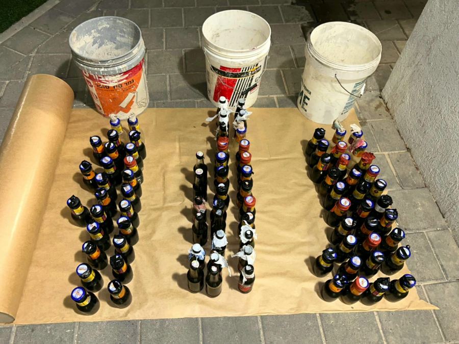 في عملية مشتركة للشرطة والجيش في الخليل، تم العثور على نحو 90 زجاجة حارقة جاهزة للاستعمال فوق منزل. أُلقي القبض على شقيقين للتحقيق.