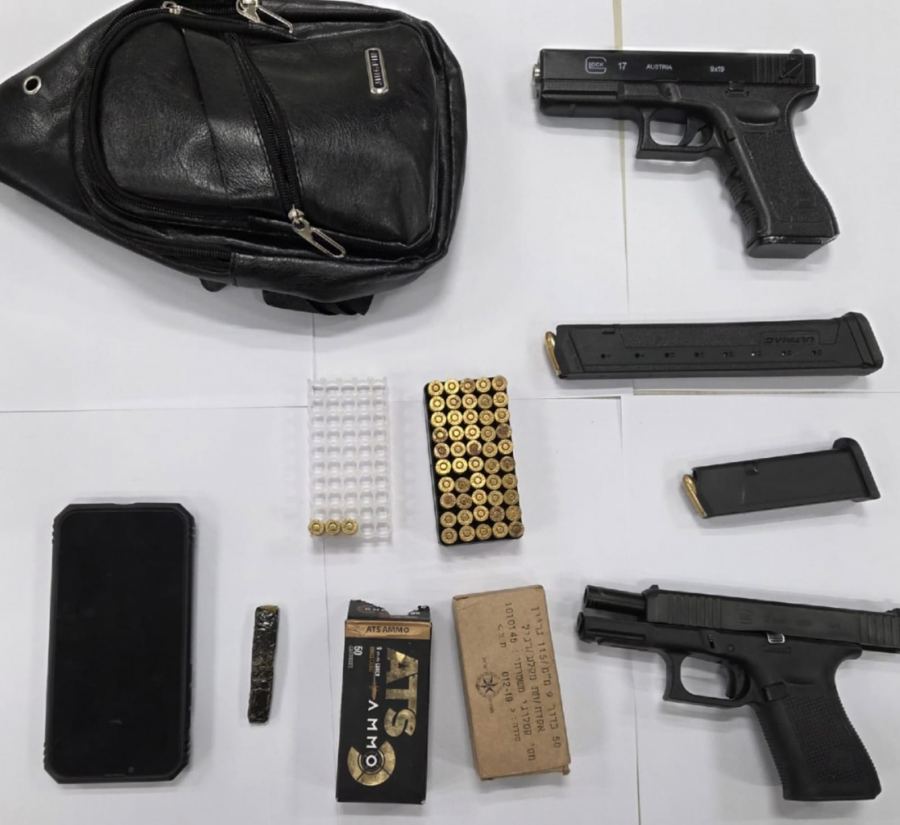 خلال التفتيش الذي قام به أفراد الشرطة، الذي أُجري في مبنى تابع للعائلة، تم ضبط مسدسين، أحدهما من نوع "غلوك" والآخر "إيرسوفت"، إضافة إلى أمشطة ذخيرة، ومادة يشتبه بأنها مخدرات من أنواع مختلفة بوزن إجمالي نحو 9 غرامات، كانت مخبأة في المكان.