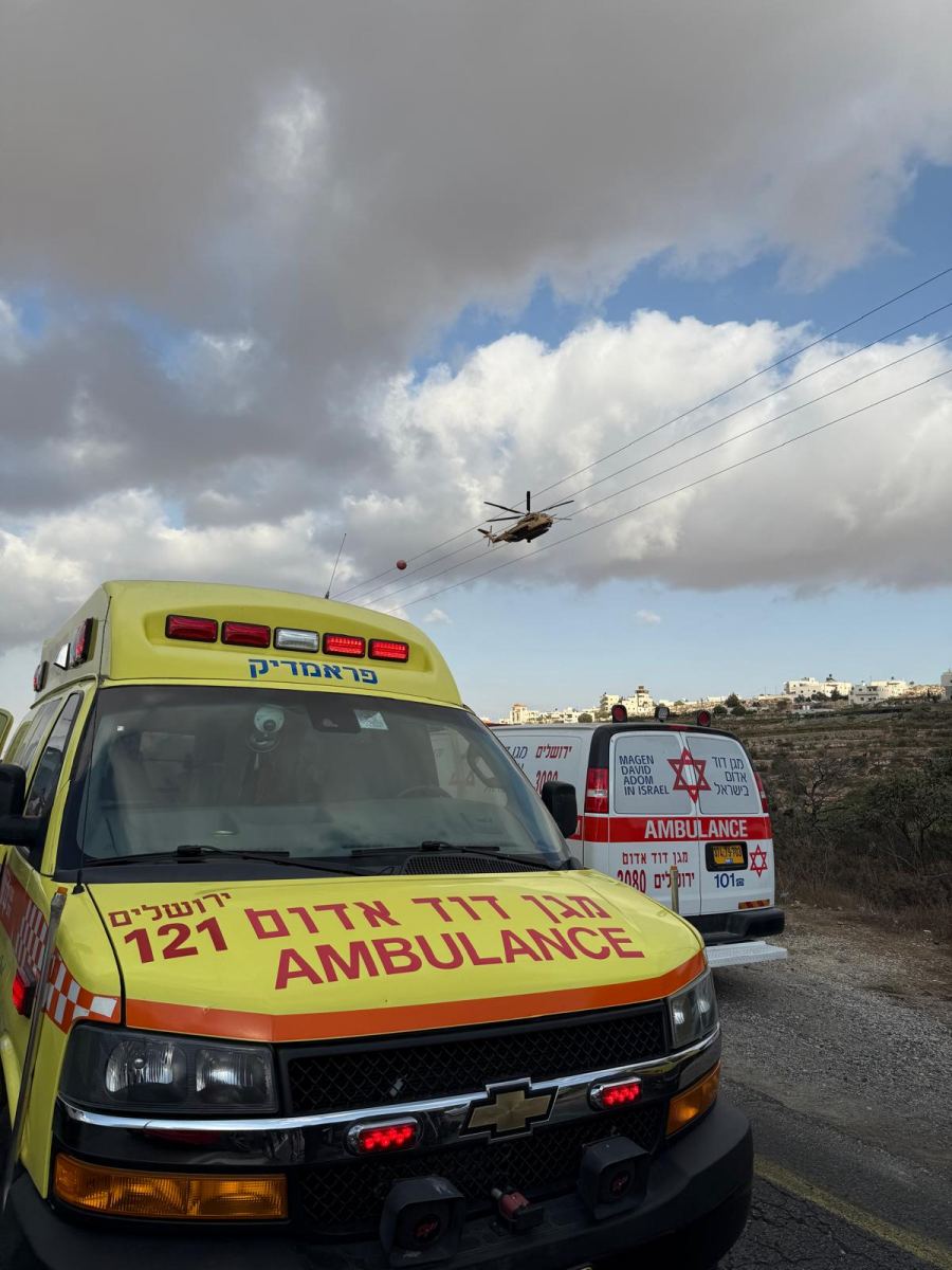 يقوم مسعفون ومضمدون من نجمة داوود الحمراء، بالتعاون مع طاقم طبي من الجيش الإسرائيلي، بتقديم العلاج الطبي ونقلوا إلى مستشفى شعاري تسيدك شابة تبلغ من العمر نحو 18 عامًا بحالة خطيرة مع إصابات في الرأس والأطراف، وامرأة تبلغ نحو 25 عامًا بحالة متوسطة مع إصابات متعددة. كما تم نقل 6 مصابين آخرين بواسطة الهلال الأحمر إلى مناطق السلطة الفلسطينية.