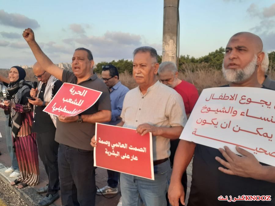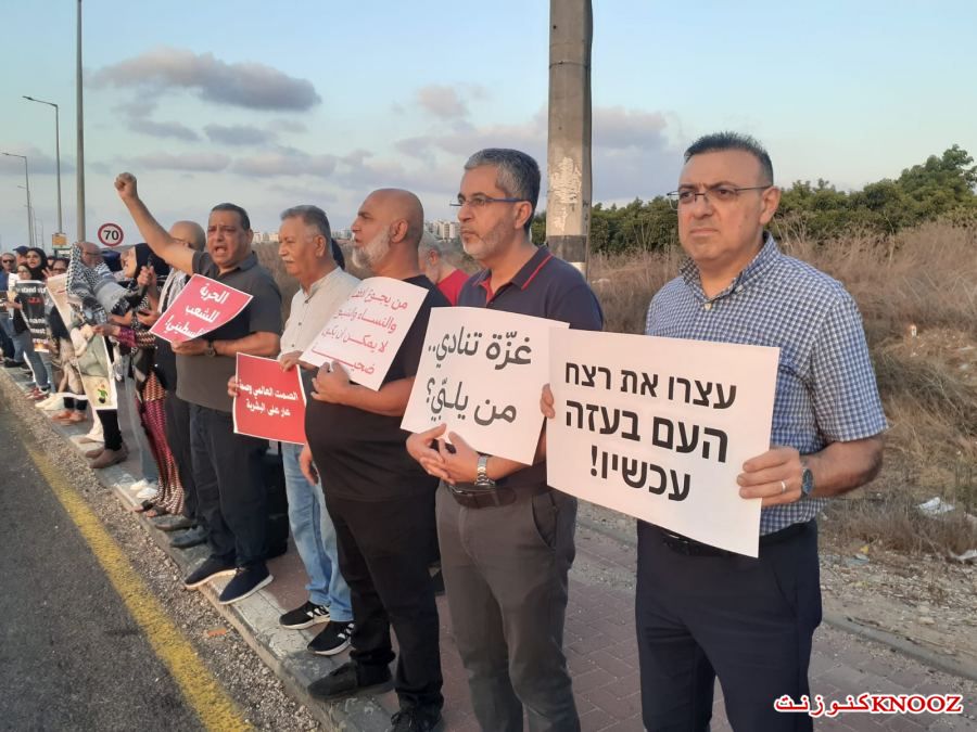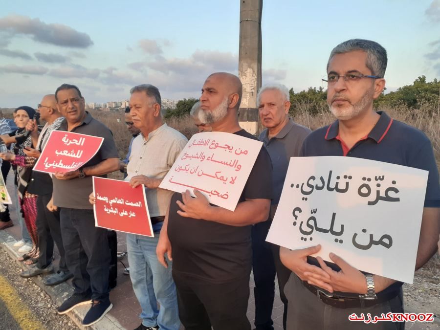 وشارك في الوقفة العشرات من الأهالي والناشطين، حيث رفعوا اللافتات المندّدة بالعدوان، وردّدوا شعارات تدعو إلى إنهاء الحصار ووقف سفك الدماء.