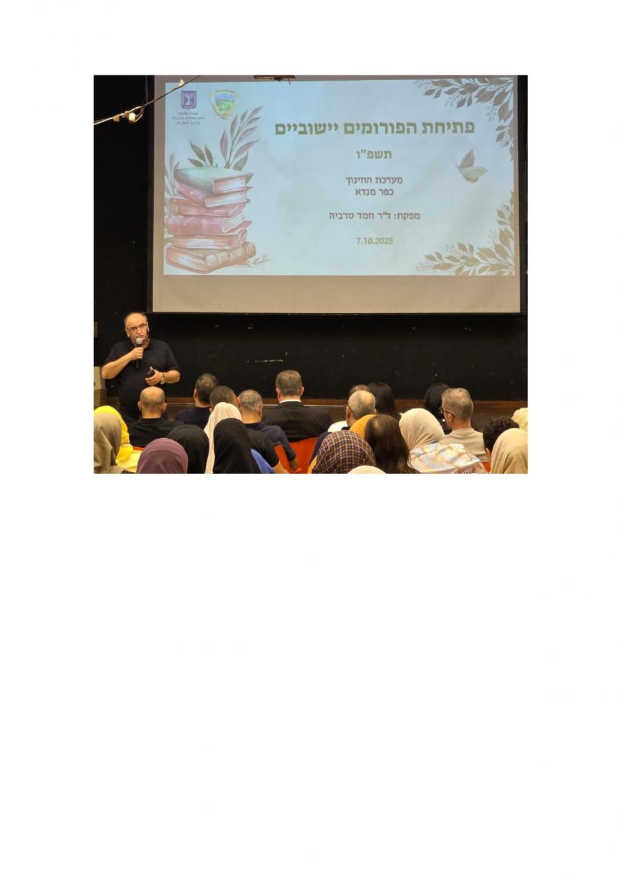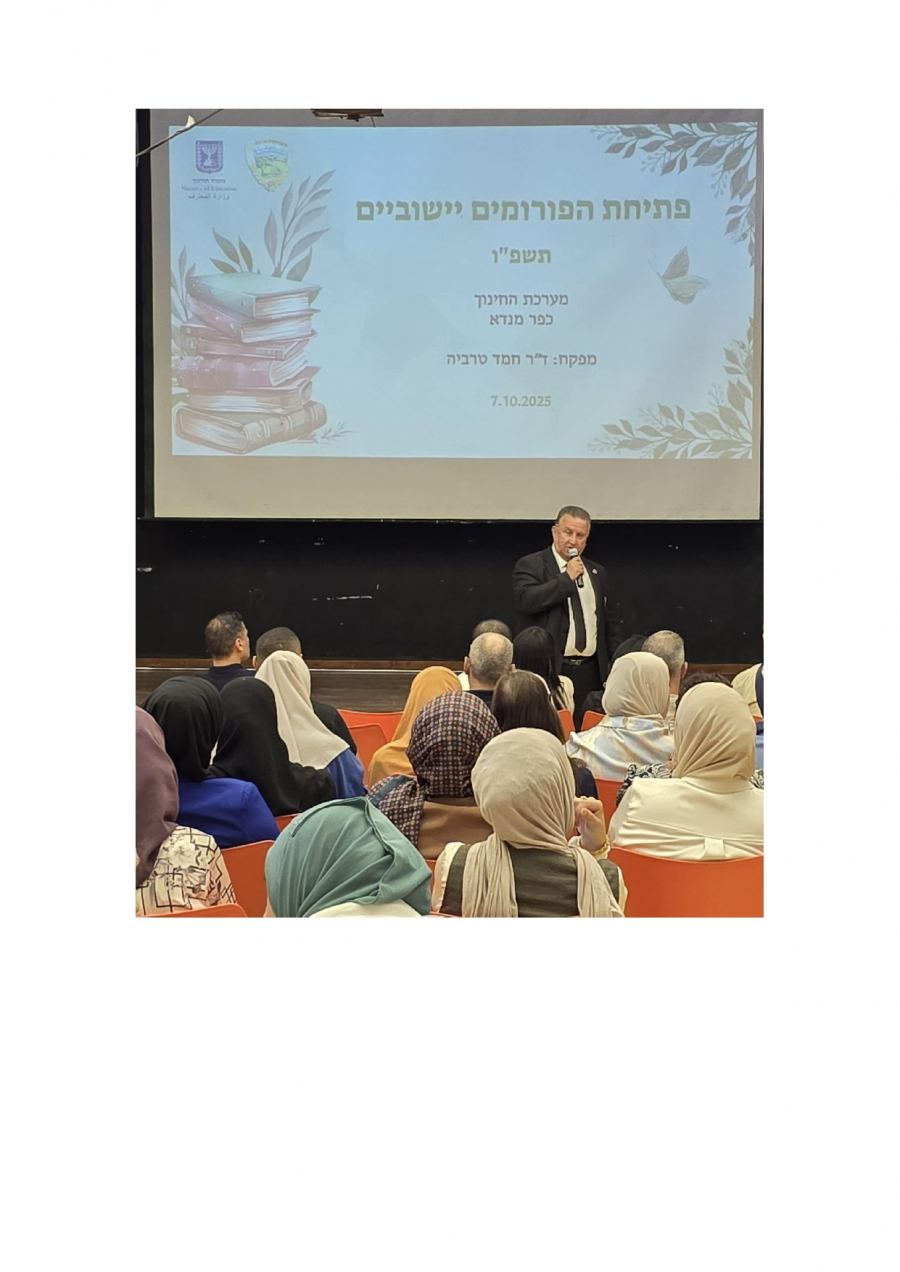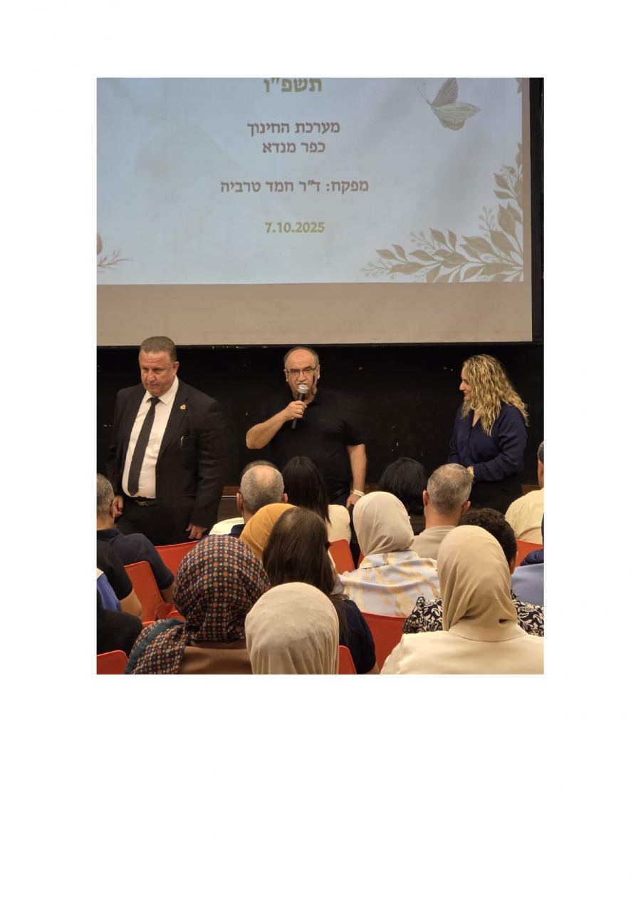 تم يوم الثلاثاء 7.10.2025 بمبادرة ودعوة من مفتش بلدة كفرمندا الدكتور حمد طربيه ومشاركة رئيس المجلس المحلي السيد علي زيدان ومدير قسم المعارف السيد حسان زيدان، مفتشي ومرشدي المواضيع المدراء وطواقم مركزي المواضيع، افتتاح عمل طواقم التدريس في جميع مدارس البلدة الابتدائية الاعدادية والثانوية،