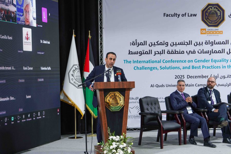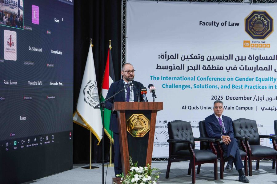 أطلقت كلية الحقوق في جامعة القدس أعمال المؤتمر الدولي بعنوان "المساواة بين الجنسين وتمكين المرأة التحديات الحلول، وأفضل الممارسات في منطقة البحر المتوسط"، بالتعاون مع وزارة شؤون المرأة الفلسطينية، ومنتدى المنظمات الأهلية لمناهضة العنف ضد المرأة، وصندوق الأمم المتحدة للسكان (UNFPA)، وجامعة بيروجيا الإيطالية (-Uni Perugia di Studi degli versità)، وبدعم من التعاون الإيطالي.