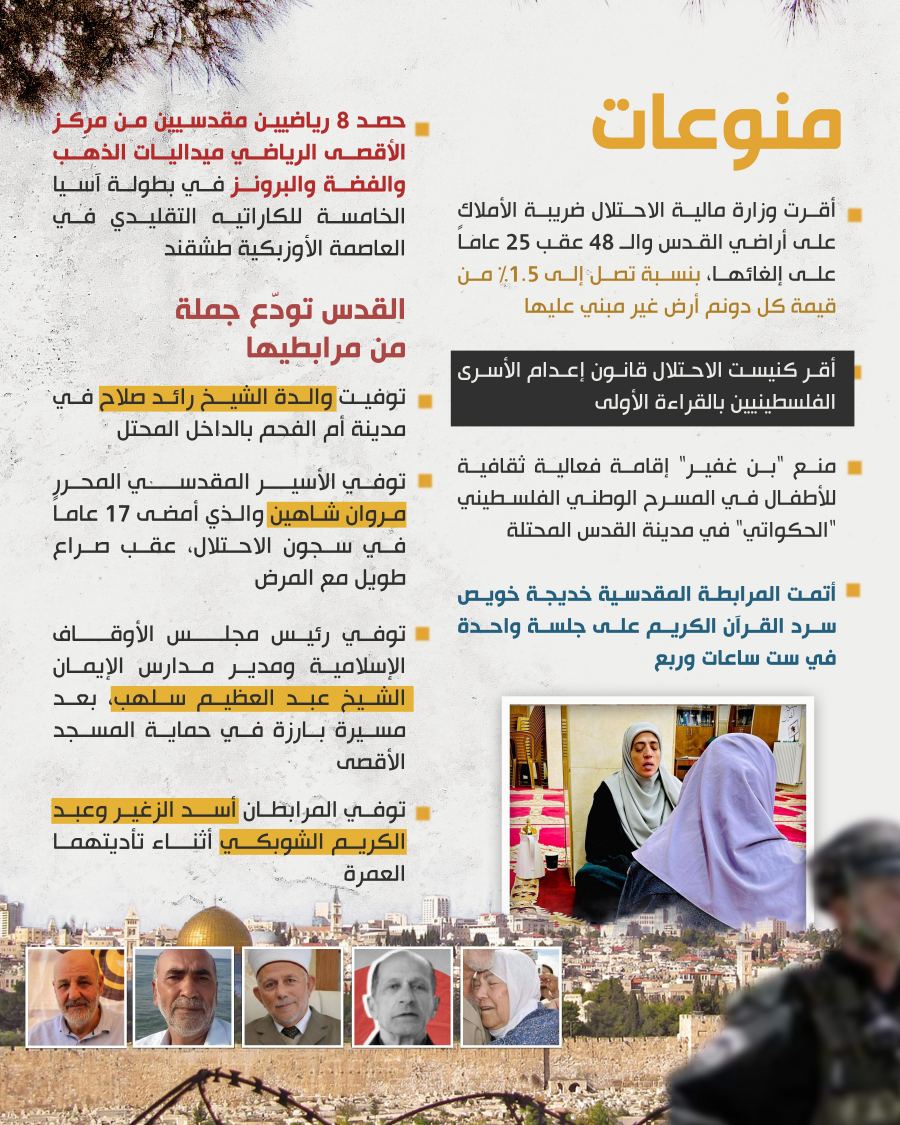 ويكشف تقرير نوفمبر 2025 عن استمرار الاحتلال في تصعيد منهجي يستهدف الأرض والإنسان والمقدسات في القدس، وتزايد الهجمات التي ينفذها المستوطنون تحت حماية قوات الاحتلال.