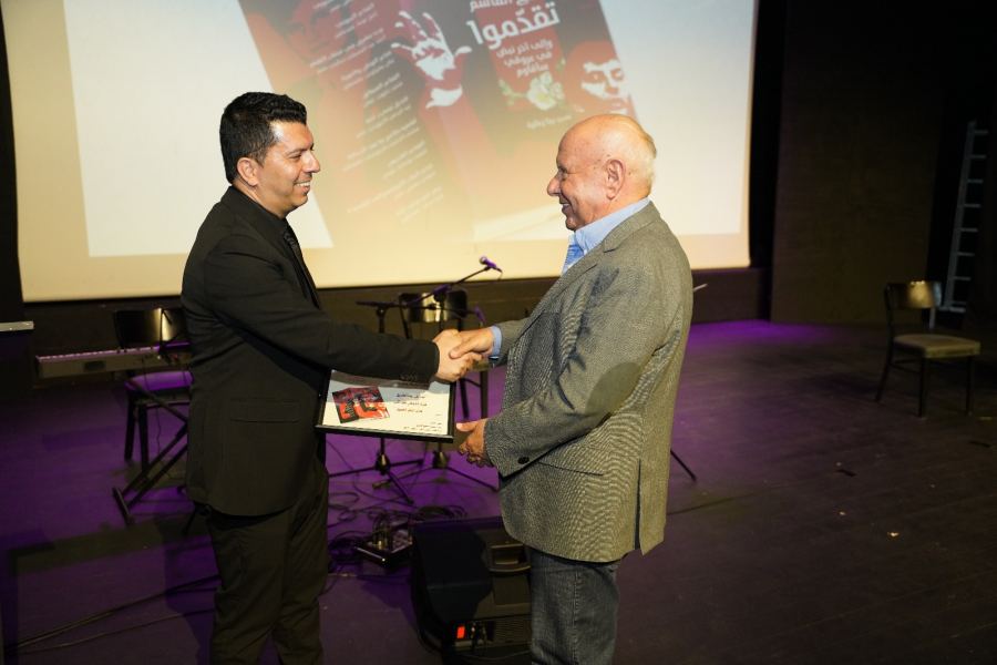 شهدت قاعة مسرح سرد في مدينة حيفا، مساءَ الأحد 30.11.2025، أمسية أدبيّة فنيّة نوعيّة احتفاءً بصدور مختارات الشاعر الكبير سميح القاسم "تقدّموا – وإلى آخر نبضٍ في عروقي سأقاوم" في القاهرة عن دار "ميريت" المصرية العريقة، بالتعاون مع مؤسسة سميح القاسم.