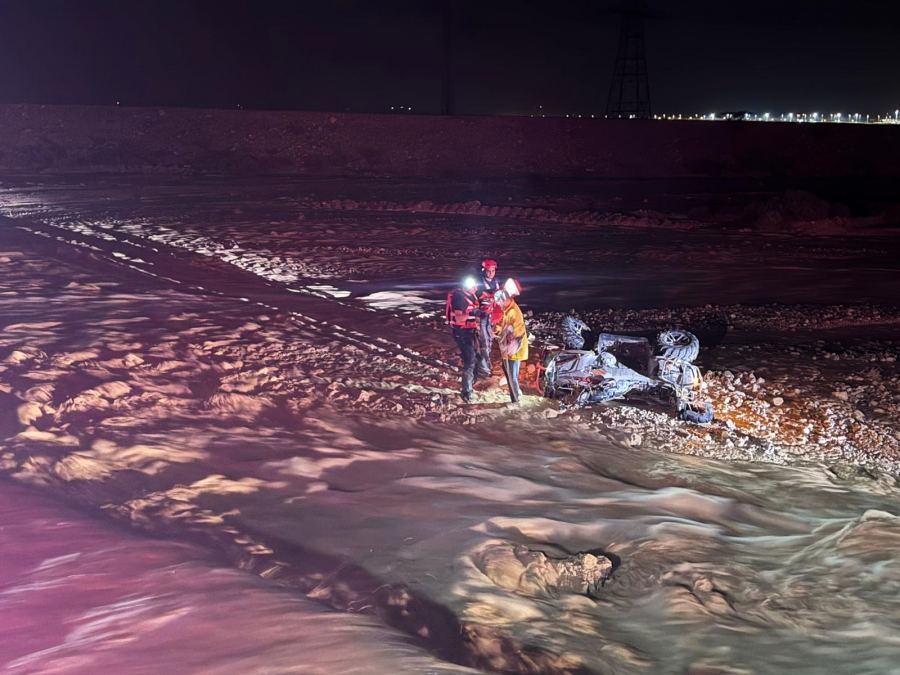 انقلاب مركبة من نوع تراكتورون داخل مجرى الوادي وثلاثة أشخاص عالقين في تدفّق المياه وباستخدام معدات خاصة للإنقاذ في المياه نفّذ رجال الإطفاء عملية تخليص معقّدة مع الحفاظ على سلامتهم وسلامة العالقين.