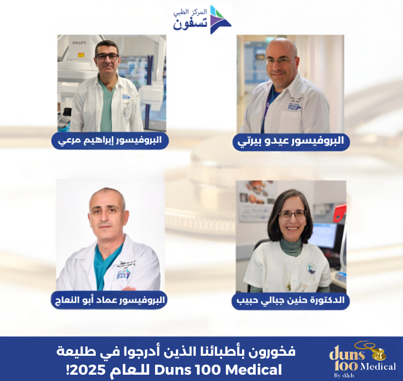 4 أطباء من المركز الطبي تسفون في طليعة Duns 100 Medical للعام 2025 من بينهم 3 أطباء عرب