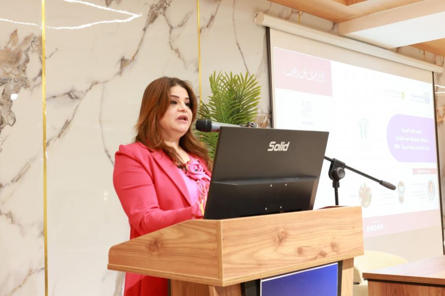 وأضافت: "كلّنا نعلم أن الاحتفاءَ باللغةِ العربيّة لا يقتصرُ على هذا اليوم؛ وإنما عن طريق العملِ الدؤوبِ والسعي إلى تعلّمِ أصولهاِ وقواعدها، وإتقان النطقِ والتعبير بها، والإلمامِ بمجالاتِها وفروعِها، ثم العملِ على نشرِ هذه المعرفةِ بين الآخرين".