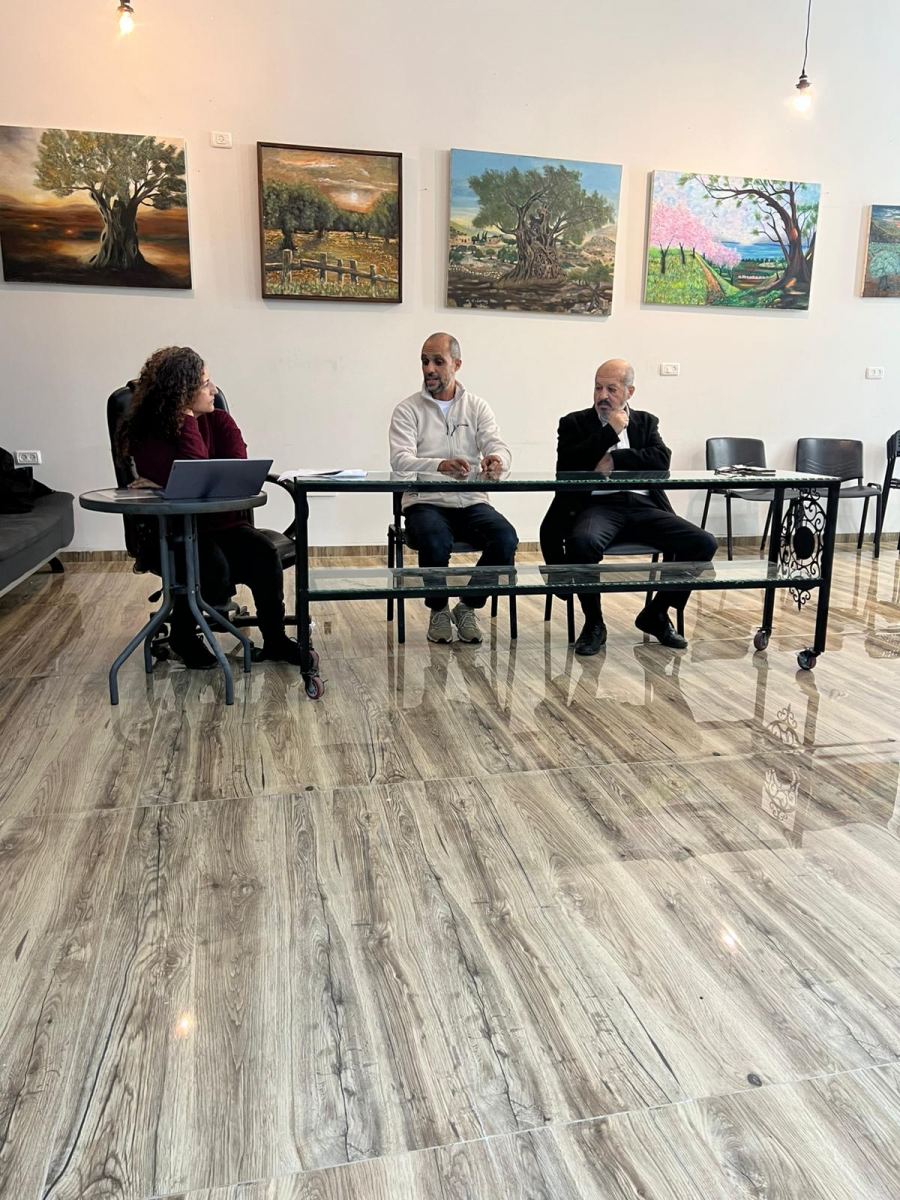 وافتُتحت الأمسية بمعرض فنّي تشكيلي حمل عنوان *«الزيتون»، بمشاركة نخبة من الفنانين: محمود بدارنة، حكمت خريس، رشيدة شيتي، مبدا ياسين، إيمان حليحل، نور قسّوم، فرج عثمان، إياد جربان، أوصاف زيدان، جميل عمرية، وأميمة جربان، إلى جانب مشاركة فنية مميّزة للفنانة المغربية **زينب جميلة بحباح*، حيث شكّل المعرض مدخلاً بصريًا مكثفًا للذاكرة والهوية والصمود، وأضفى بعدًا جماليًا عميقًا على الندوة.