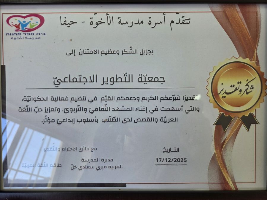 خلود فوراني- بمناسبة يوم اللغة العربية العالمي، وللسنة الخامسة على التوالي، نظّمت جمعية التطوير الاجتماعي سلسلة من النشاطات اللامنهجية المميّزة في مدارس حيفا، وذلك في إطار رسالتها الهادفة إلى تعزيز مكانة اللغة العربية في نفوس الطلاب، وترسيخ الاعتزاز باللغة الأم بوصفها ركيزة أساسية للهوية الثقافية والقومية.