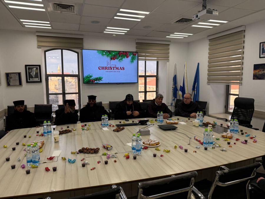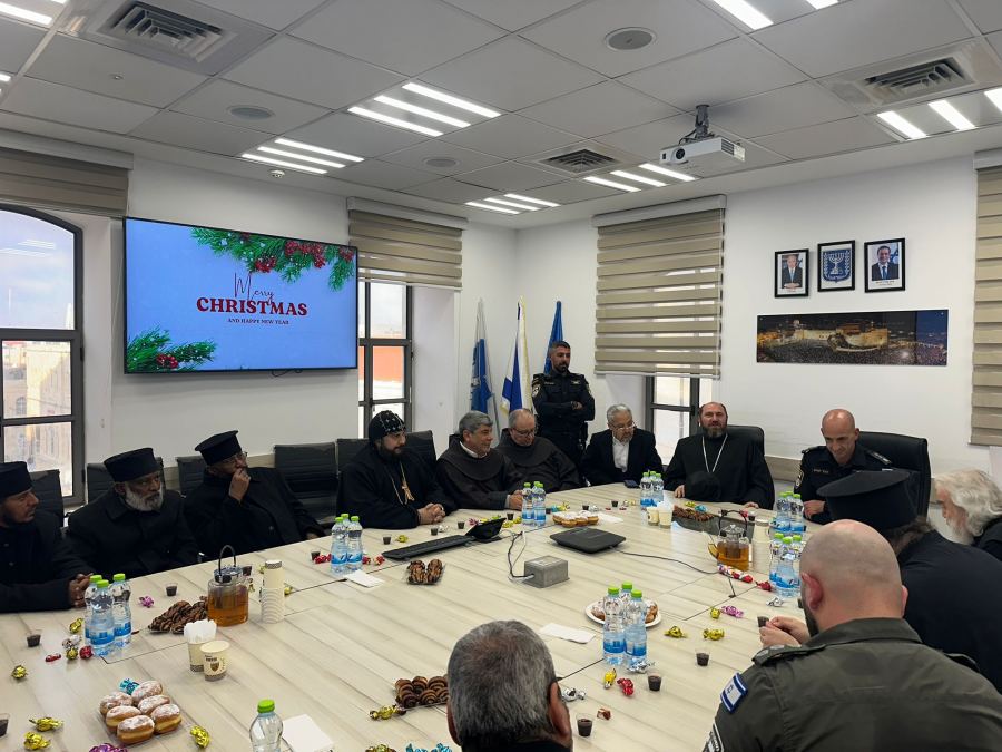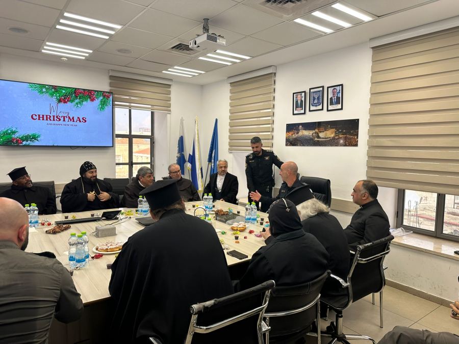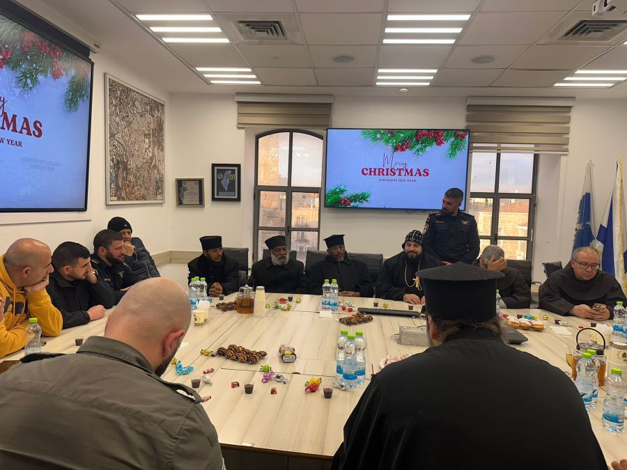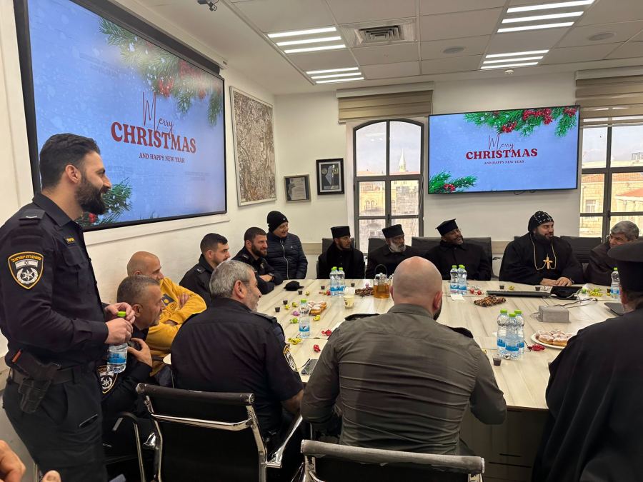 *لقاء خاص لقيادة مديرية دافيد في لواء أورشليم القدس مع رؤساء الكنائس والطوائف المسيحية في القدس بمناسبة عيد الميلاد المجيد خلال الأيام الأخيرة، عُقدت عدة لقاءات خاصة بمبادرة من شرطة إسرائيل في مديرية دافيد التابعة للواء أورشليم القدس، برئاسة قائد المديرية العميد دقير تميم،* *وبمشاركة ضباط المديرية، مع رؤساء الكنائس والطوائف المسيحية في أورشليم القدس، وذلك بمناسبة حلول عيد الميلاد المجيد في هذه الأيام*.