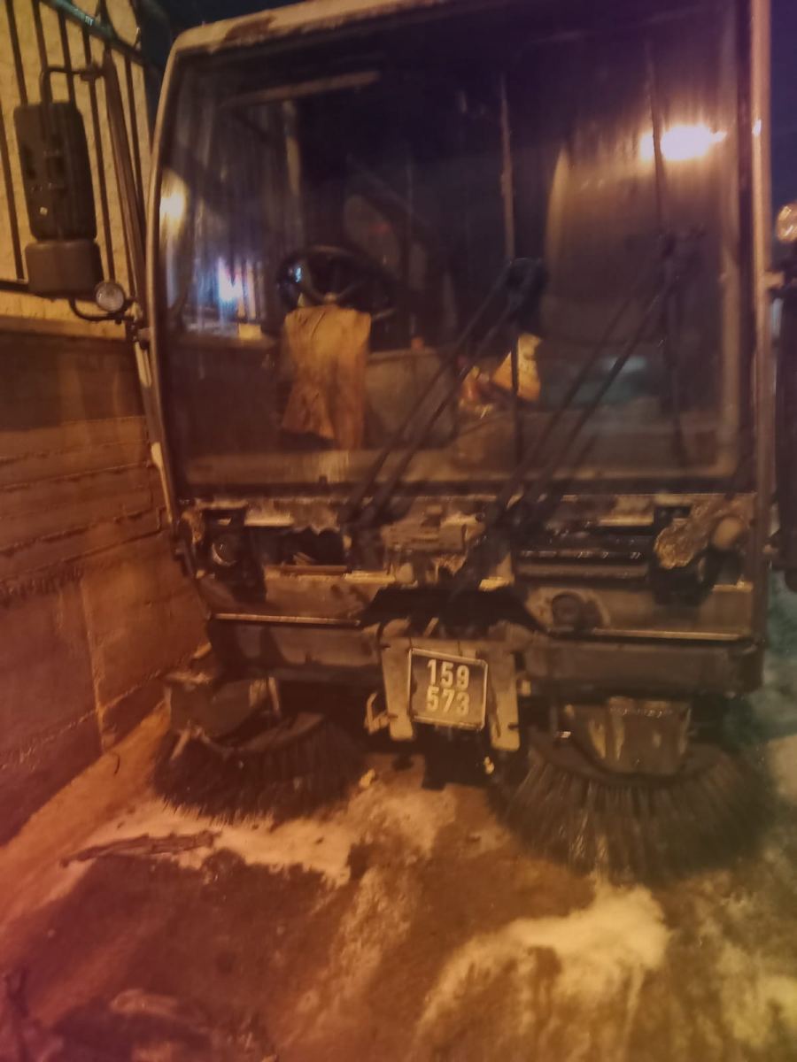 فيديو : احراق سيارة تنظيف الشوارع التابعة لبلدية عرابة