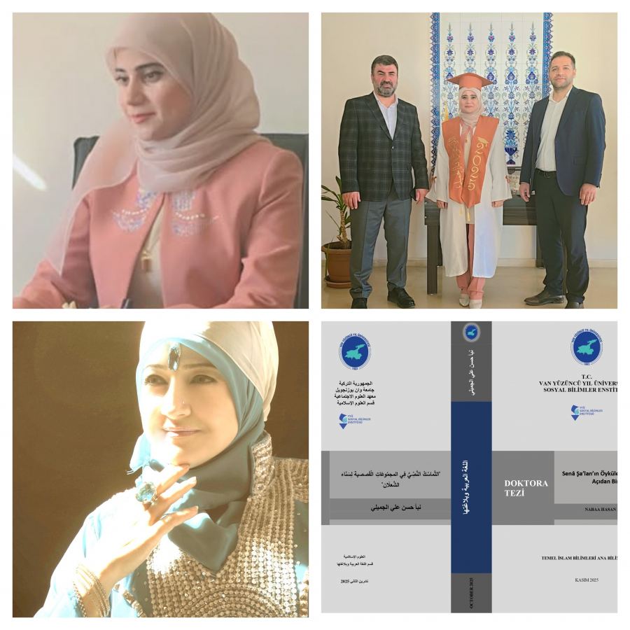 جامعة وان- يوزونجوييل/ فان/ تركيا/: ناقشت الباحث العراقيّة نبأ حسن علي الجميليّ أطروحتها الدّكتوراة في شعبة اللّغة العربيّة وبلاغتها، قسم العلوم الإسلاميّة، معهد العلوم الإسلاميّة، جامعة وان- يوزونجوييل، في الجمهوريّة التّركيّة استكمالاً لمتطلبات الحصول على درجة الدّكتوراة في شعبة اللّغة العربيّة وبلاغتها وهي بعنوان: "التّماسك النّصّيّ في المجموعات القصصيّة لسناء الشّعلان، وهي تدرس قصص الأديبة الأردنيّة ذات الأصول الفلسطينيّة أ. د. سناء الشّعلان (بنت نعيمة) في دراسة نقديّة متخصّصة تحت موضوع العنوان.