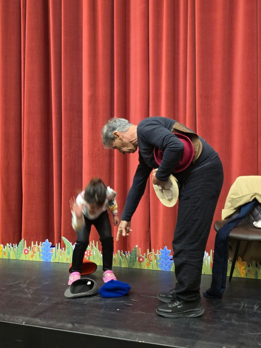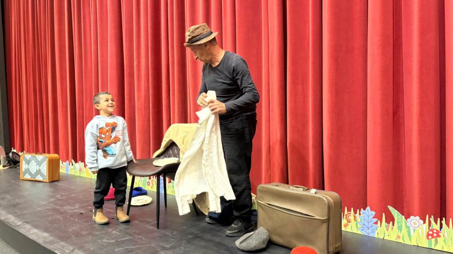 وتفاعل الجمهور بشكل لافت مع فقرات الحكواتي التي قدّمها الفنان أسامة مصري، والتي أسرت خيال الأطفال، ولامست وجدانهم بلغة حكاية عذبة قريبة من القلب، جمعت بين المتعة والمعنى، وأحيت تقاليد السرد الشفهي بروح معاصرة. كما أضفت فقرة التمثيل الصامت للفنان سعيد سلامة بعدًا بصريًا وإنسانيًا عميقًا، حيث تحولت الإيماءة والحركة إلى لغة عالمية، أثارت الدهشة والابتسام والتأمل في آنٍ واحد، اذ استحوذت فقرة البانتوميم على اعجاب الاطفال وعلت ضحكاتهم وملأت فضاءات القاعة، الى جانب اشراك عدد كبير من الاطفال في فقرات عرض المسرح الصامت الفكاهي الصامت مما اشعل حماس الاطفال وتفاعلهم.