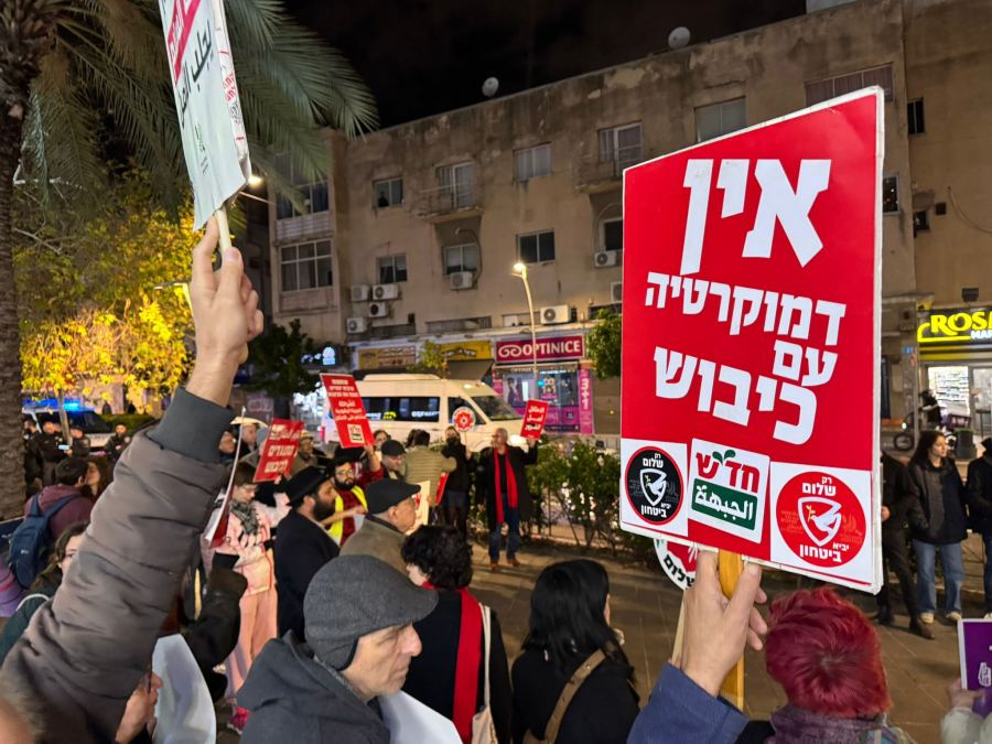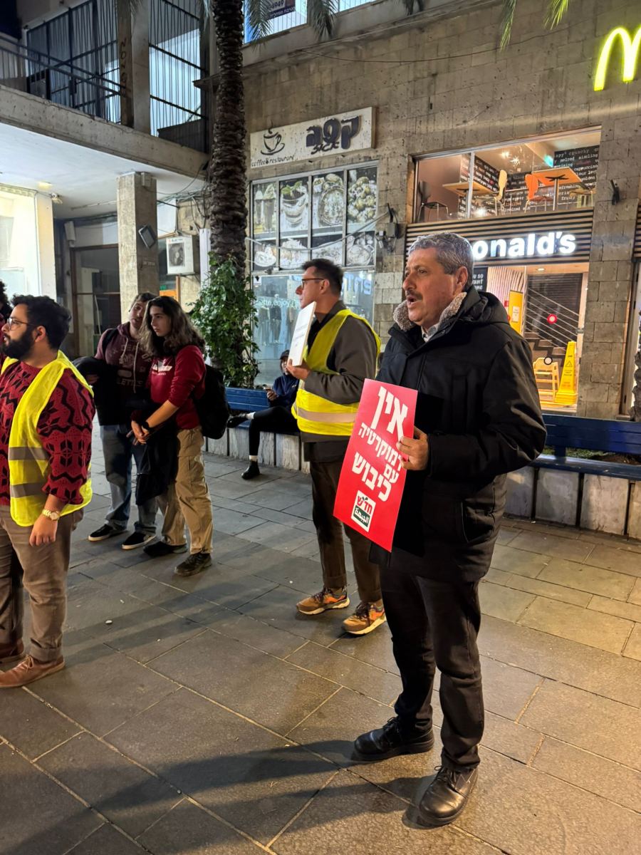 وأكد المتظاهرون انه في الوقت الذي يموت فيه الأطفال في غزة من البرد ويهجّر عشرات الالاف في الضفة الغربية وتمارس عصابات الاجرام ابشع ممارساتها لا يمكن الجلوس جانبا ويجب اسماع صوت واضح ضد هذه السياسة الموجهة ضد شعبنا.