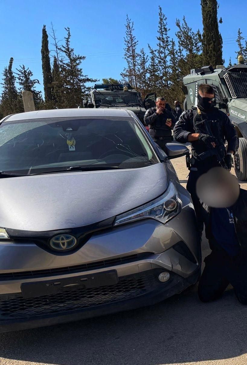 وخلال العملية ذاتها، وردت معلومات عن وجود مركبة مسروقة (من نوع "شيري") بالقرب من المكان. القوات مشطت المنطقة وضبطت المركبة التي تحمل لوحات فلسطينية مزيفة (سُرقت من منطقة #الشارون عام 2024)، وعثر بداخلها على مسدس آخر وقفازات. وتم القبض على مشتبه به (في الأربعينات) ضُبط وهو يحمل مفاتيح المركبة بيده.