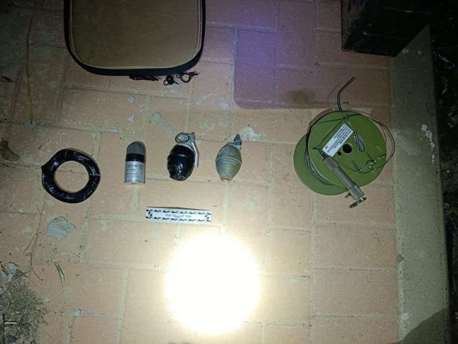 وخلال عمليات التمشيط، عثرت القوات على مخبأ أسلحة خطير أسفل إحدى المركبات، احتوى على: قنبلة شظايا، قنبلة تدريب، فتيل متفجر بطول 3 أمتار، رصاصة اسفنجية (40 ملم)، وصندوق ذخيرة. وقد قام خبير المتفجرات بالتعامل مع المضبوطات ونقلها لاستكمال التحقيق في مركز شرطة "عياروت".