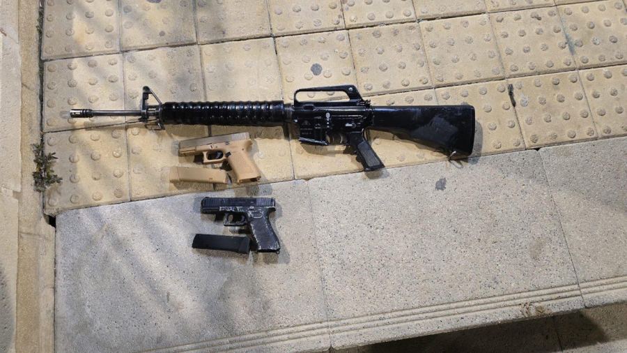 شملت المضبوطات: بندقية M-16، ومسدسين من نوع "جلوك" مع امشاط ذخيرة.