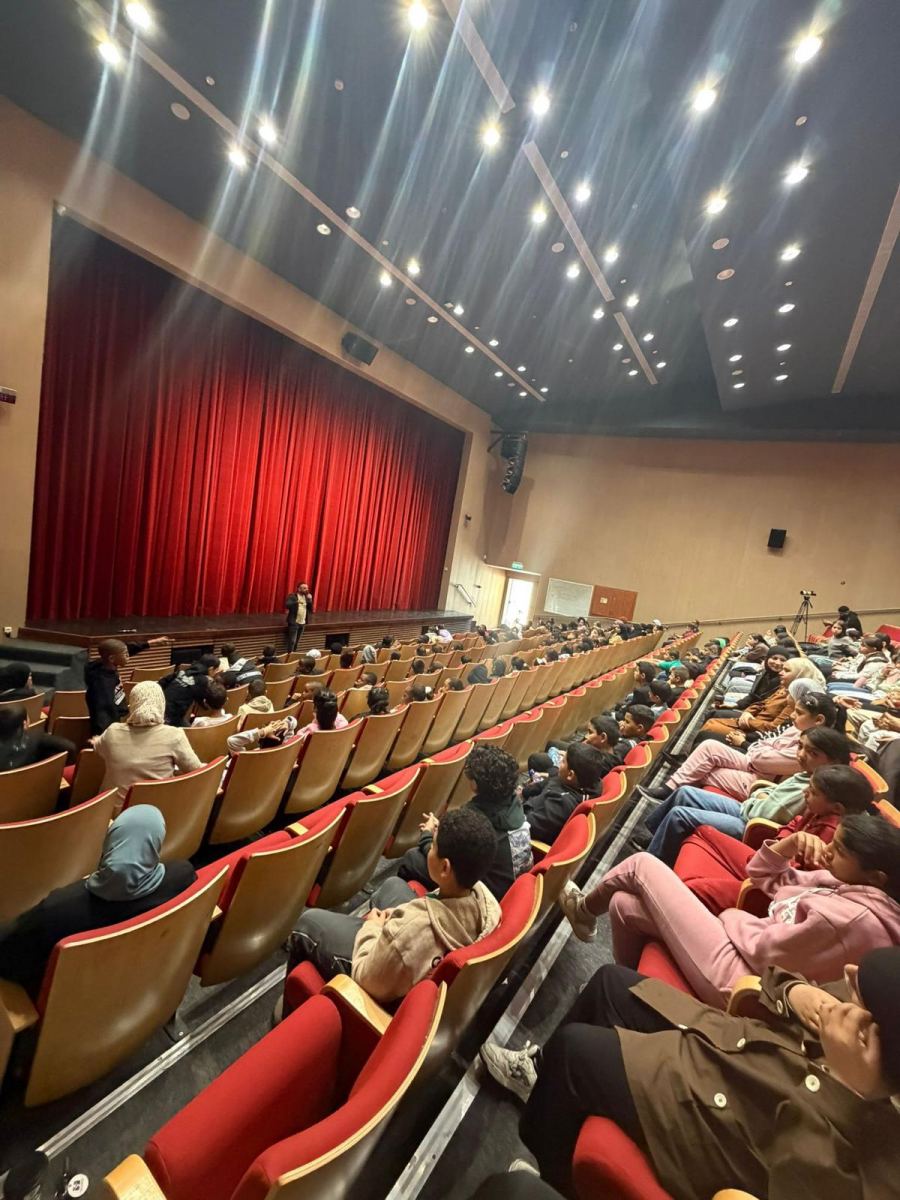 وتناولت المسرحية قضية التنمر بأسلوب إنساني مؤثر، حيث جسّدت المشاعر والتحديات اليومية التي يمر بها أصحاب الإلهام الحقيقي من ذوي القدرات الخاصة، مسلطةً الضوء على أهمية احتوائهم وتعزيز ثقتهم بأنفسهم، إلى جانب إبراز دور الأسرة والمجتمع في دعمهم وتمكينهم لتحقيق طموحاتهم وآمالهم في الحياة. وقد تفاعل الطلاب والحضور بشكل لافت مع أحداث المسرحية ورسائلها التربوية والاجتماعية الهادفة.
