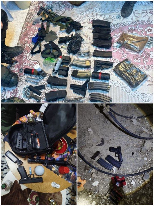 وأسفرت العملية عن ضبط بندقية M-16، ومسدسي "جلوك"، ونظام "روني"، ومناظير قنص، وذخيرة كثيرة.