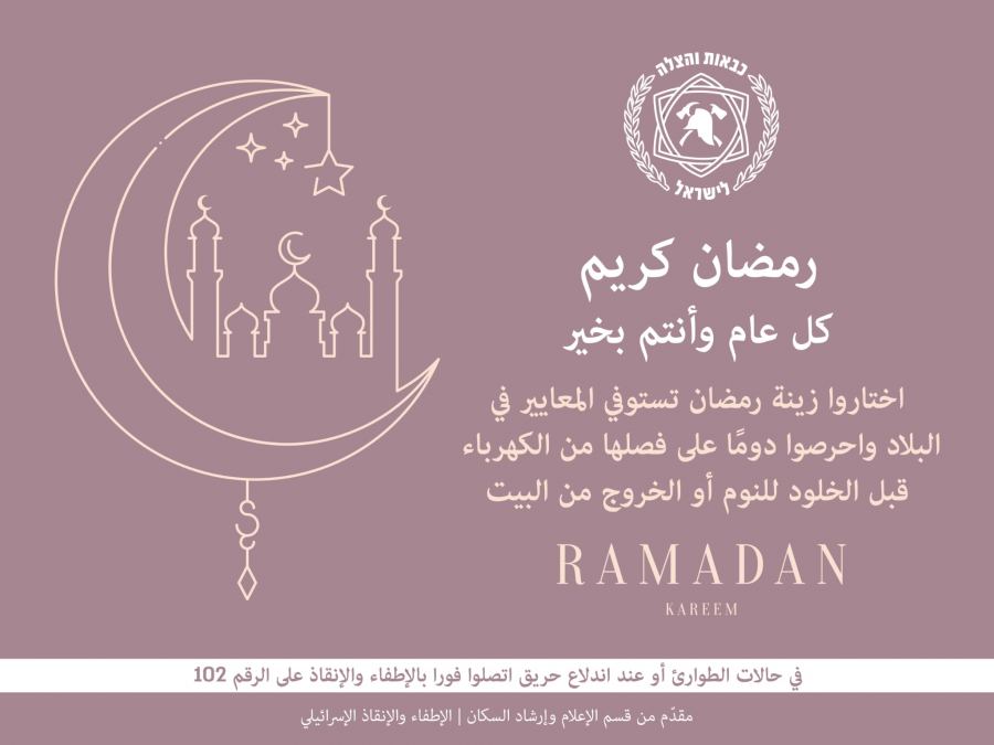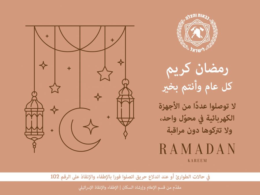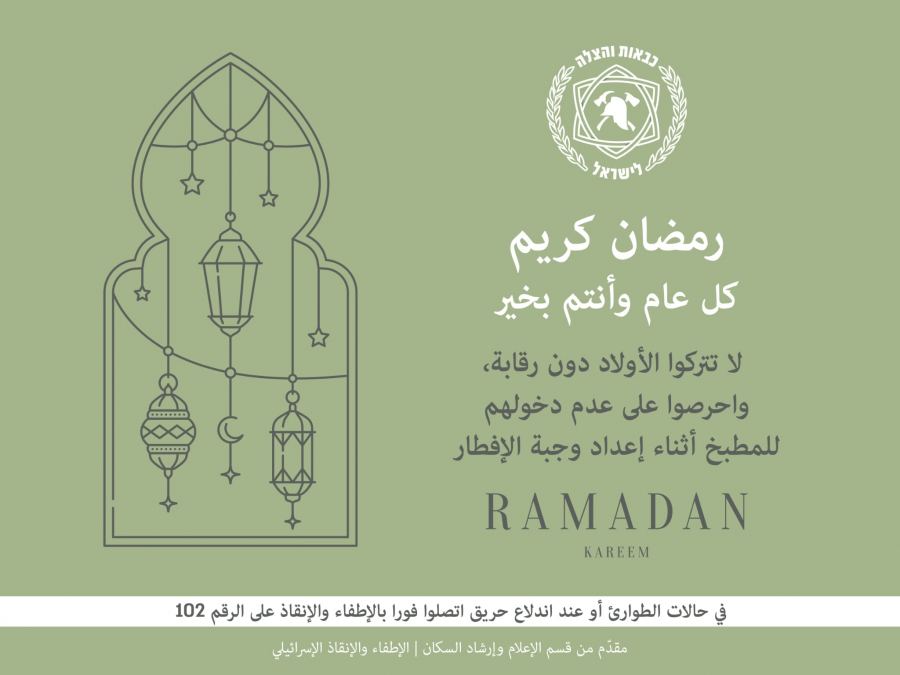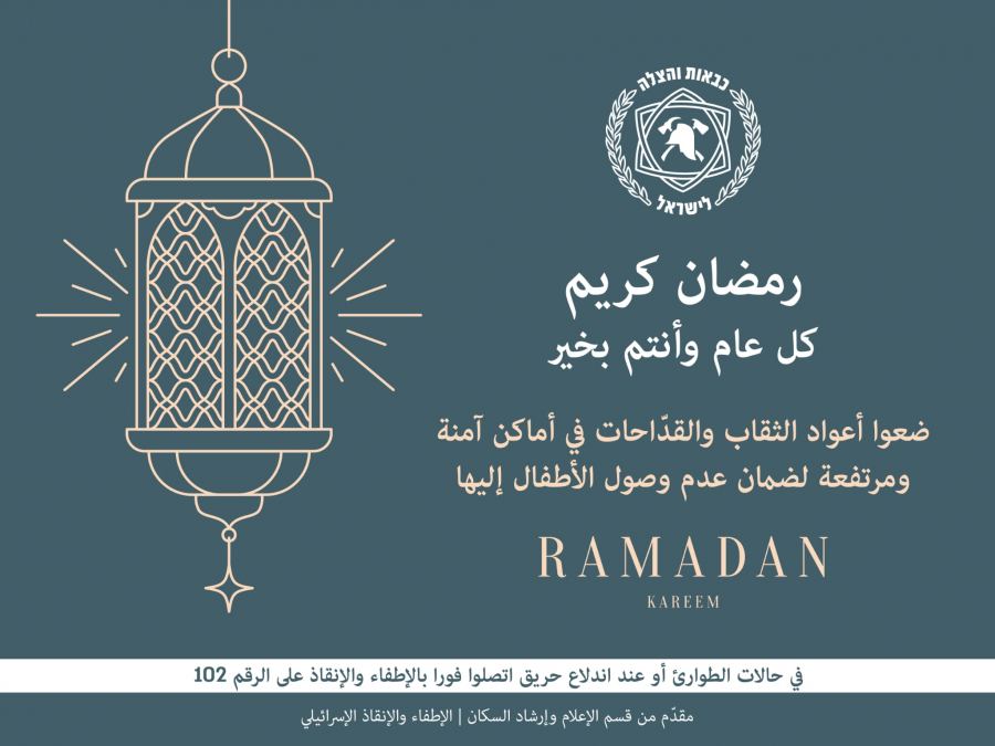 مع اقتراب حلول الشهر الفضيل شهر رمضان المبارك تتمنى لكم سلطة الإطفاء والإنقاذ شهرًا مباركًا ومقبولًا وكل عام وأنتم بخير.