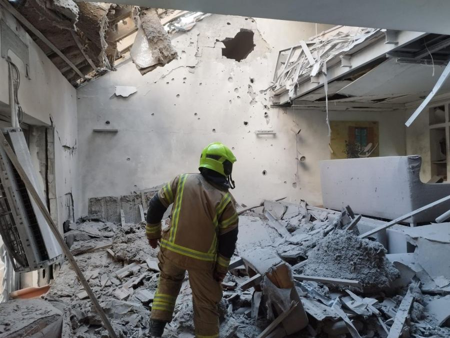 6. منطقة المركز – سقوط صواريخ على مبنى مكاتب
