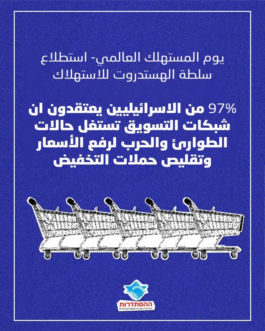 ومن المعطيات التي تستحق الاهتمام، خاصة في ظل الواقع الحالي والحملة العسكرية المستمرة مع إيران، هو ثقة الجمهور في شبكات التسويق أثناء حالات الطوارئ. فقد أجاب 79% من المشاركين في الاستطلاع بأنهم يعتقدون أن شبكات التسويق تستغل بشكل كبير أو إلى حد ما حالات الطوارئ الوطنية (مثل الحروب أو الأوبئة) لغرض رفع الأسعار أو تقليص حملات التخفيض.