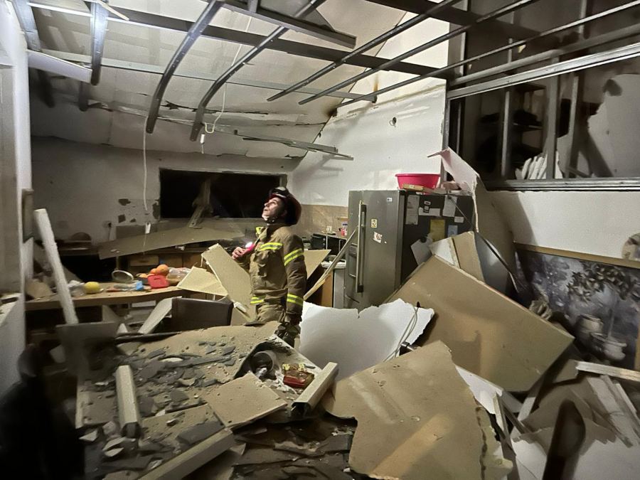 وفي مدينة ديمونا جنوب البلاد، سقطت شظية صاروخ على مبنى مكوّن من طابق واحد ما أدى إلى اندلاع حريق وانهيار جزئي في المكان، إضافة إلى أضرار لحقت بمبانٍ أخرى. وتعمل طواقم الإطفاء والإنقاذ على إخماد الحرائق وتمشيط المنطقة بحثًا عن عالقين، كما جرى إنقاذ سكان من داخل الملاجئ.