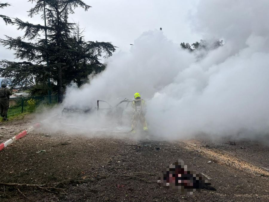 في منطقة الشمال، لقي شخص مصرعه بعد سقوط شظايا صاروخية على سيارته في بلدة مسغاف عام، ما أدى إلى اشتعال السيارة واحتراق مركبة أخرى في المكان.