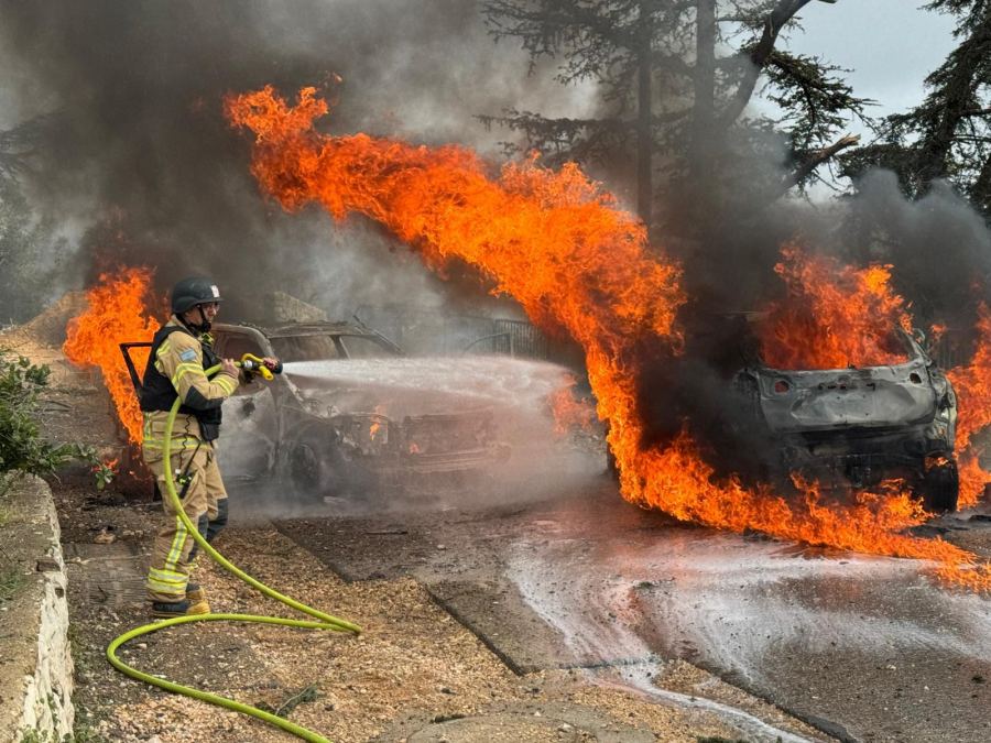 وأفادت طواقم الإطفاء بأنها تعمل في عدة مواقع داخل المدينة بعد ورود بلاغات عن إصابة شظايا بين مبنيين سكنيين، إضافة إلى إصابة مبنى مكوّن من أربعة طوابق.