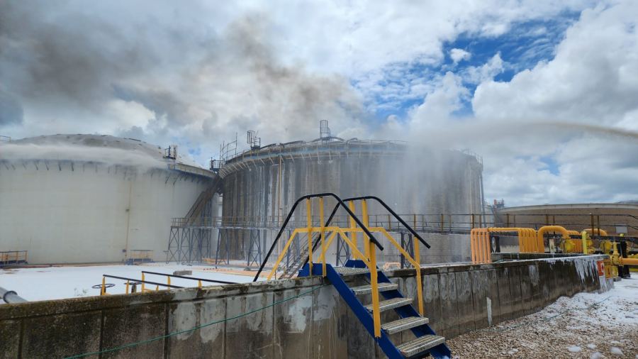 كما سُجلت إصابة داخل مجمع مصافي النفط (بازان) في خليج حيفا، حيث تضرر صهريج وقود متوقف داخل المصنع وتصاعد دخان كثيف من سطح مبنى مجاور. وتعمل 13 طاقم إطفاء بالتعاون مع طواقم الطوارئ التابعة للمصنع وقيادة الجبهة الداخلية على إخماد الحريق ومنع انتشاره، إلى جانب تنفيذ عمليات تبريد وفحص للتأكد من عدم وجود مواد خطرة.
