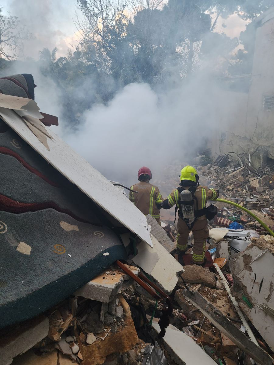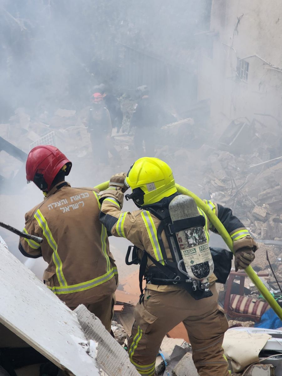 وفي أحد المواقع في حيفا، أصيب مبنى سكني مكوّن من نحو سبعة طوابق إصابة مباشرة، ما أدى إلى دمار كبير في المكان واندلاع حريق، مع مخاوف من احتمال انهيار المبنى. وتعمل في الموقع طواقم الإطفاء والإنقاذ والوحدة الخاصة للبحث عن عالقين تحت الأنقاض.