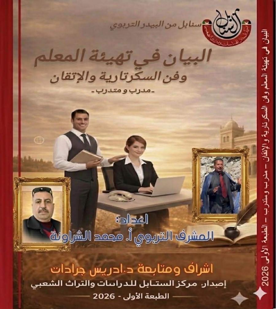 في زمن تتسارع فيه التحديات التربوية وتتعاظم فيه الحاجة إلى معلمٍ واعٍ ومؤهلٍ بعمق، يطلّ علينا إصدارٌ تربويّ نوعي يحمل عنوان "البيان في تهيئة المعلم الجديد وفن السكرتاريا والإتقان"، للمشرف التربوي الأستاذ محمد الشراونة، ليشكل إضافة فكرية وميدانية لافتة في حقل التربية والتعليم.