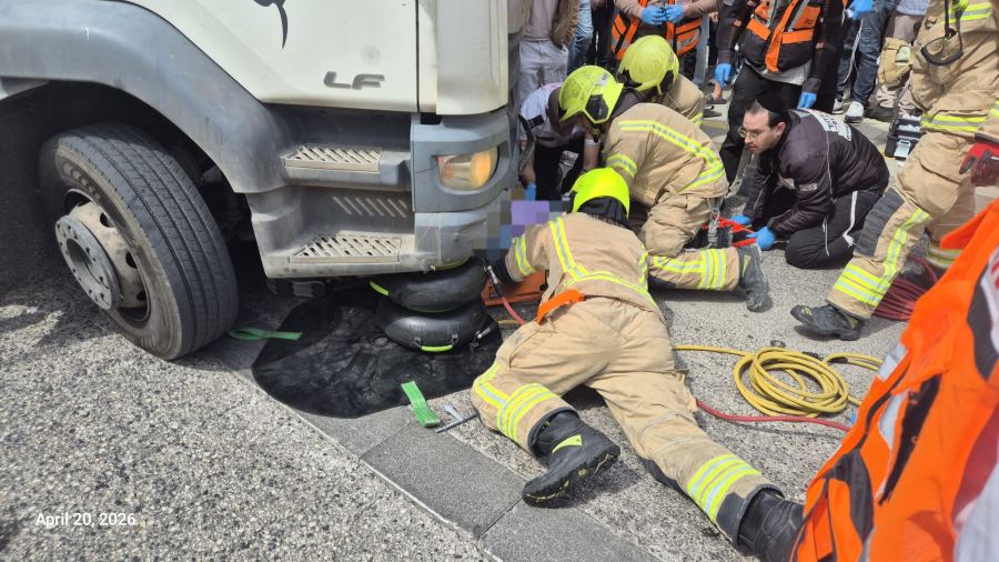 في حيفا – شارع هرتسل، عملت طواقم الإطفاء والإنقاذ على تخليص امرأة علقت تحت عجلات شاحنة جراء حادث طرق. وتم استخدام معدات خاصة، من بينها وسائد رفع، لرفع الشاحنة وتحريرها بأمان. وقد نُقلت المصابة إلى المستشفى لتلقي العلاج، حيث وُصفت حالتها بالمتوسطة.